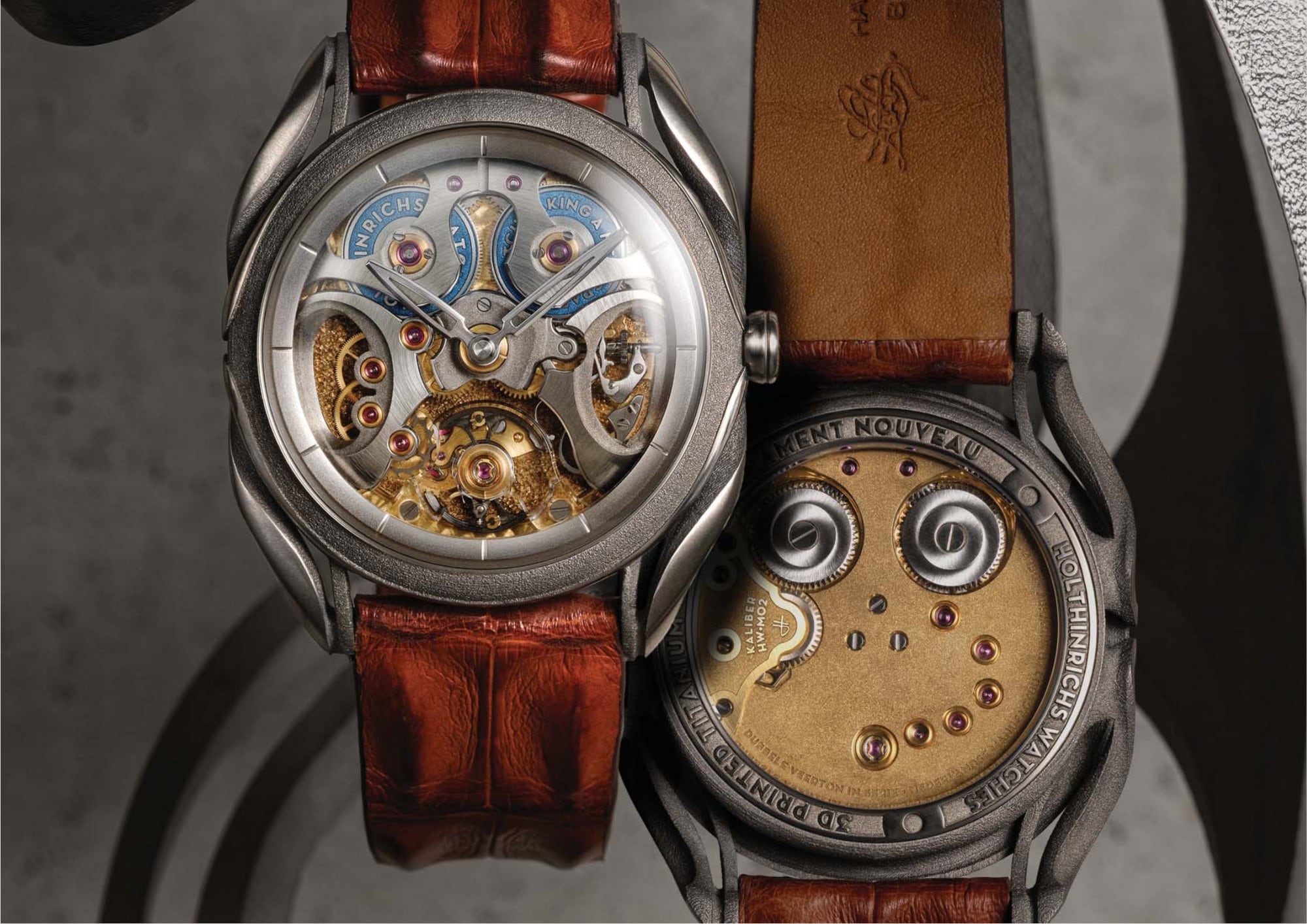 Holthinrichs Ornament Nouveau Spirit Of Blue. This exceptional timepiece integrates innovative technology, 3D metal printing, and extensive haute horlogerie finishing within a groundbreaking, sculptural design language.
