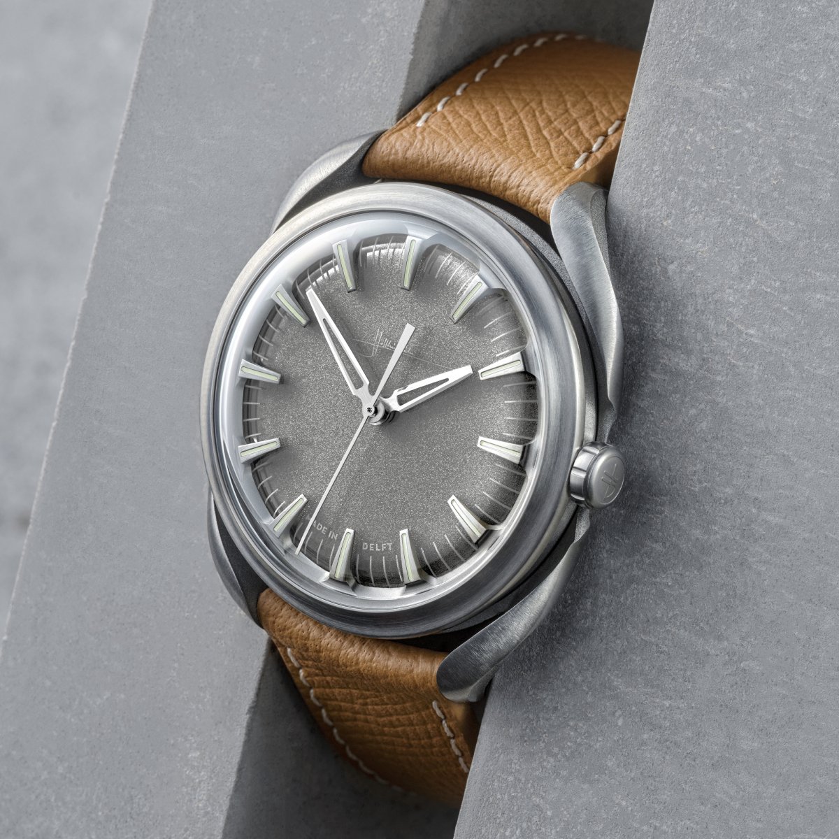The Signature Ornament with a black rhodium dial offers a sleek and striking presence. The 38.5 mm Grade 5 titanium case showcases Holthinrichs’ signature curved lugs and contrasting raw and brushed surfaces for visual dynamism. Its multi-layered dial—with a frosted metal base, floating indices on sapphire, and glowing hour markers—creates dramatic depth. Powered by a refined Sellita SW-300 movement and completed with an 18K-plated rotor, this version fuses contemporary boldness with mechanical craftsmanship.