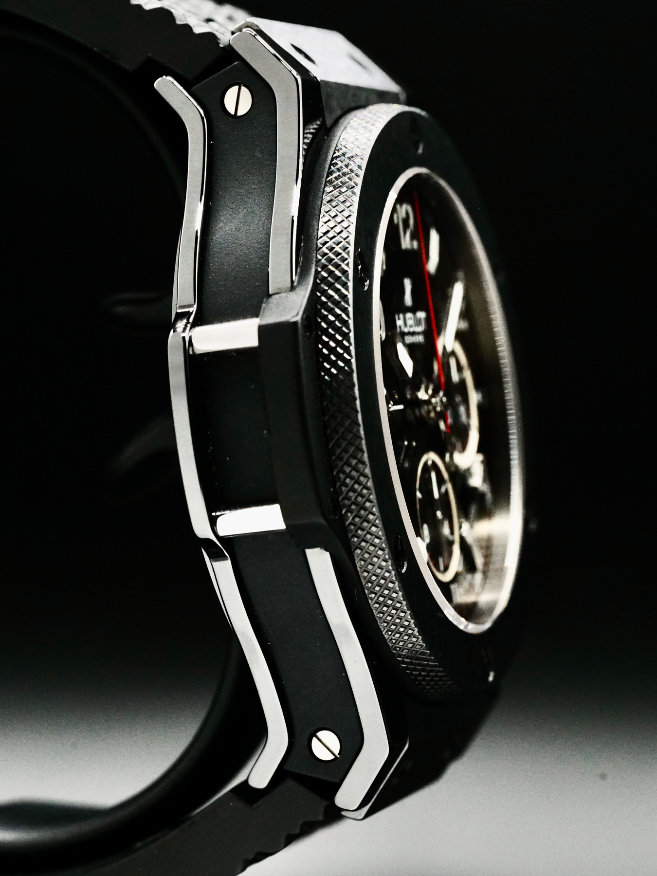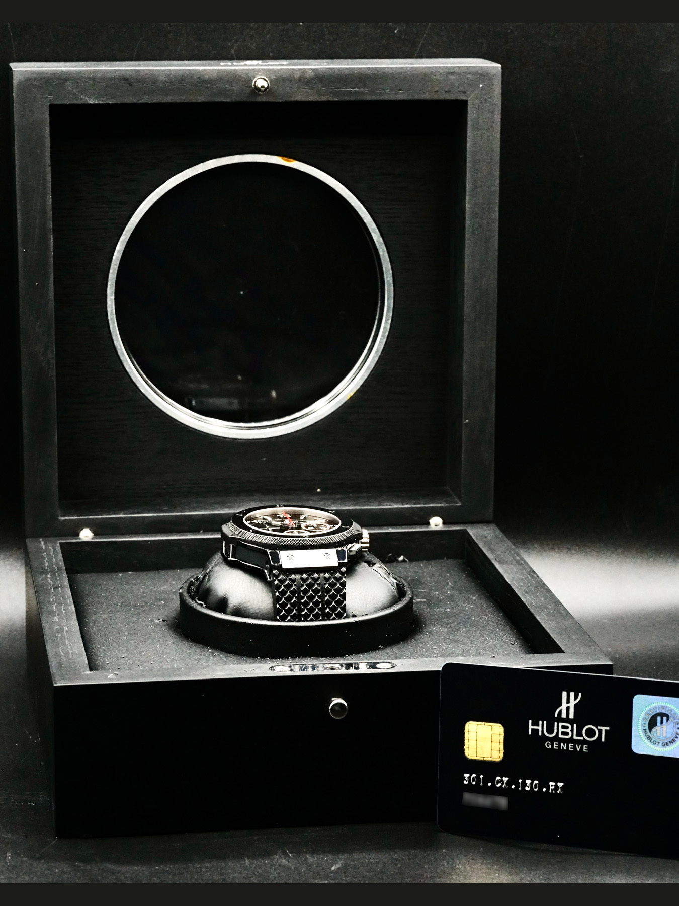 This Hublot 301.CX.130.RX Big Bang Black Magic 44mm is in EXCELLENT condition.This watch includes its original box and international warranty card dated for November 2012. No instruction manual.