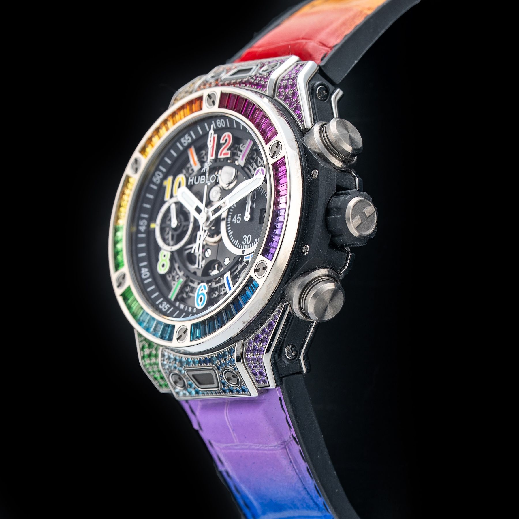 This Hublot 421.NX.1117.LR.0999 Big Bang Unico Titanium Rainbow is in GREAT condition. This watch includes its Original Box, Original Papers. This watch has been fully authenticated and certified by Exquisite Timepieces. Please note, the photos shown are of the actual watch you will receive.