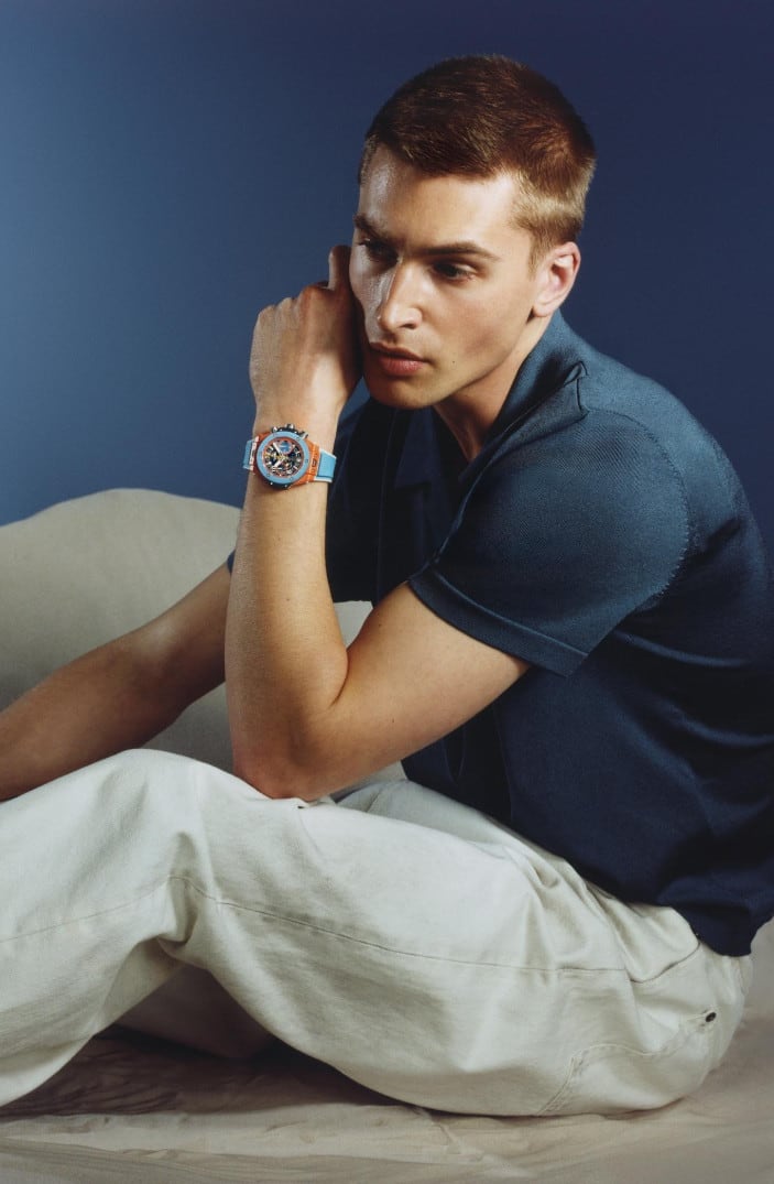 Crafted in Hublot’s signature high-tech ceramic, the Big Bang Unico Summer 2025 micro blasted orange case glows like the golden hour, while the sky-blue bezel mirrors the boundless sea. Light, bold and effortlessly cool, it’s made for those who live where the sun meets the waves.
