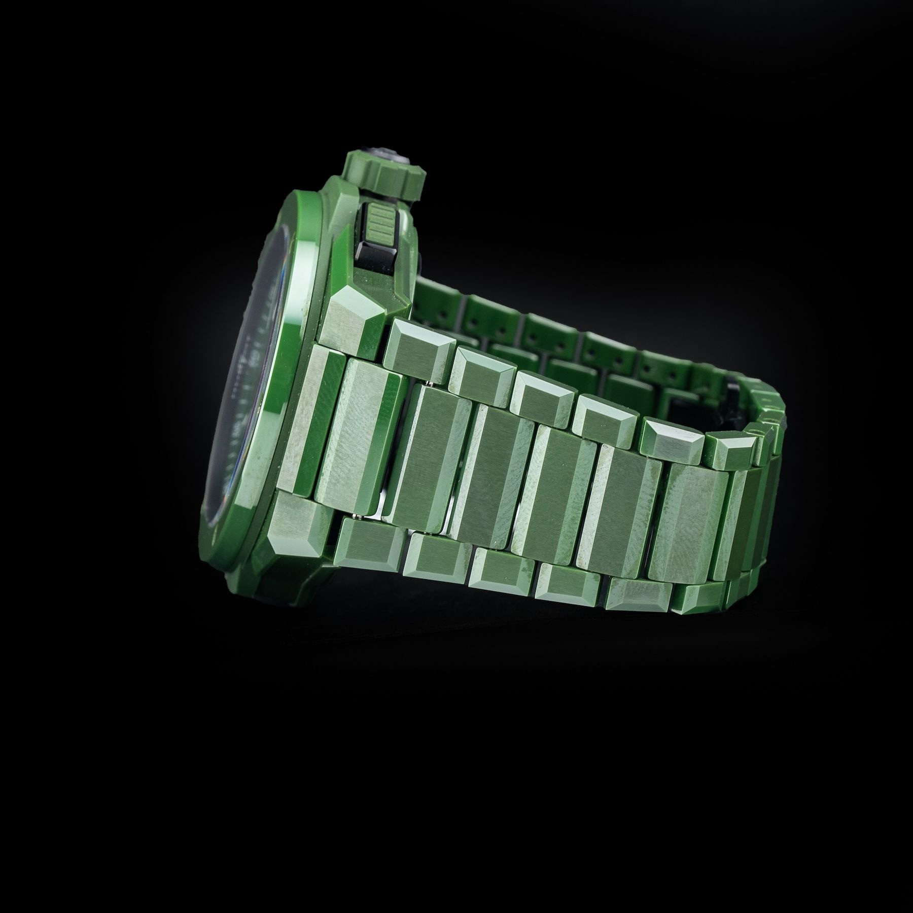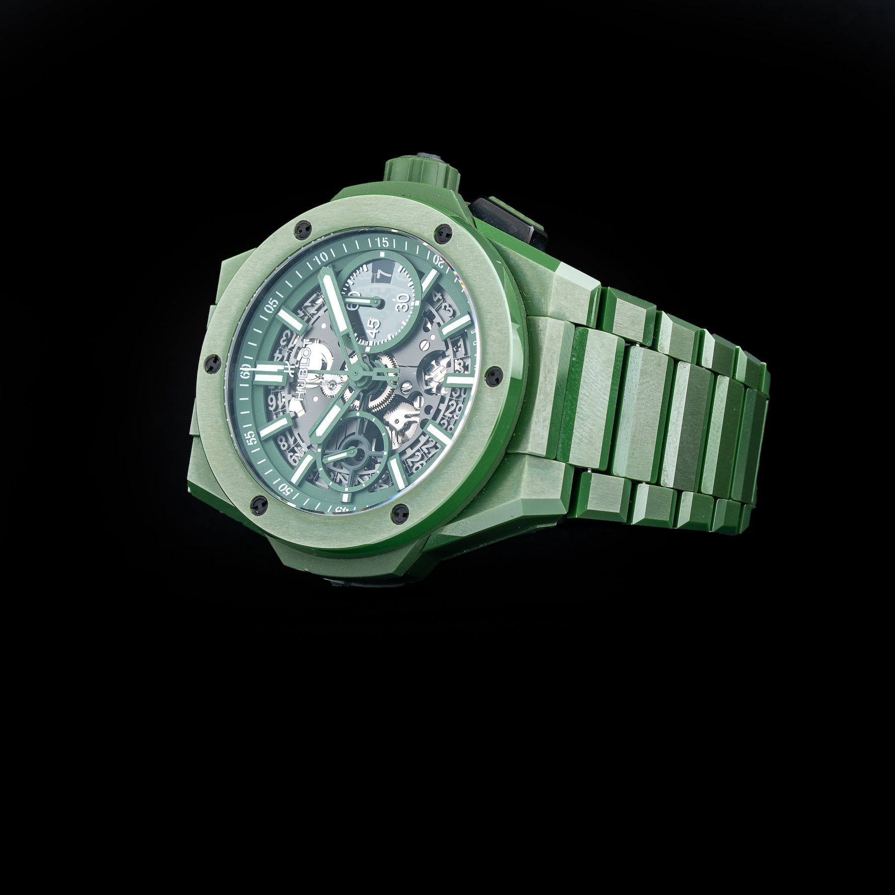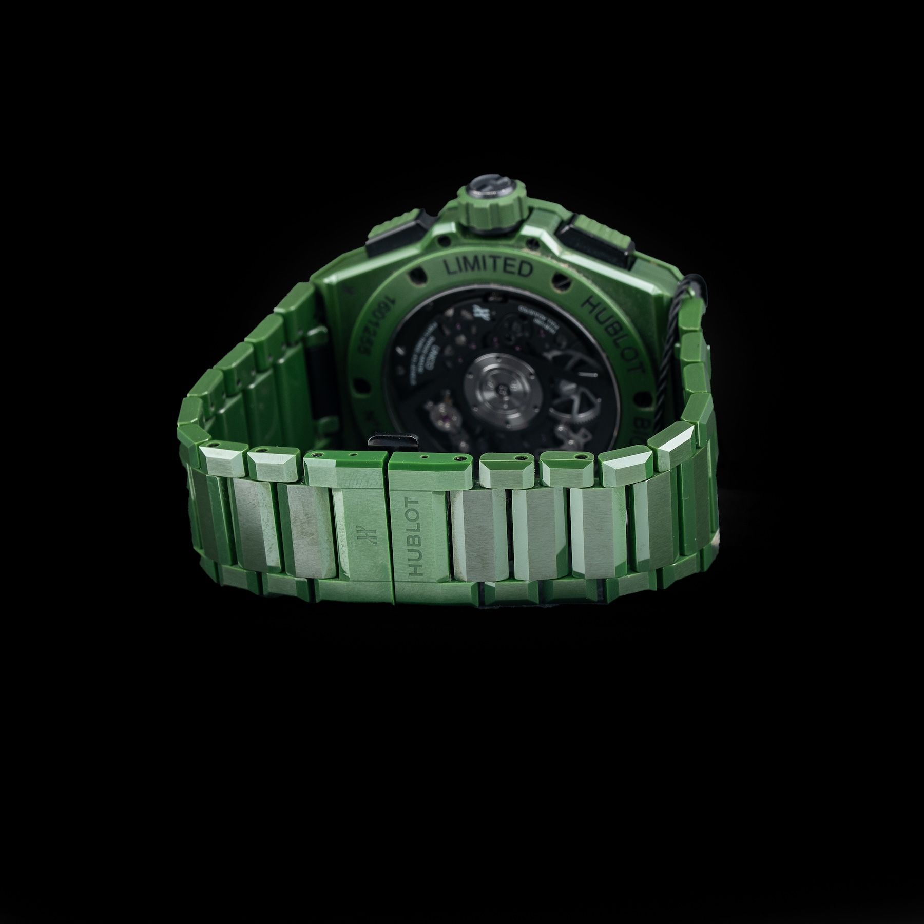 This watch features a 42mm ceramic case on ceramic bracelet. This watch also sports a green dial. Powered by an automatic movement. Water resistance up to 100 meters.