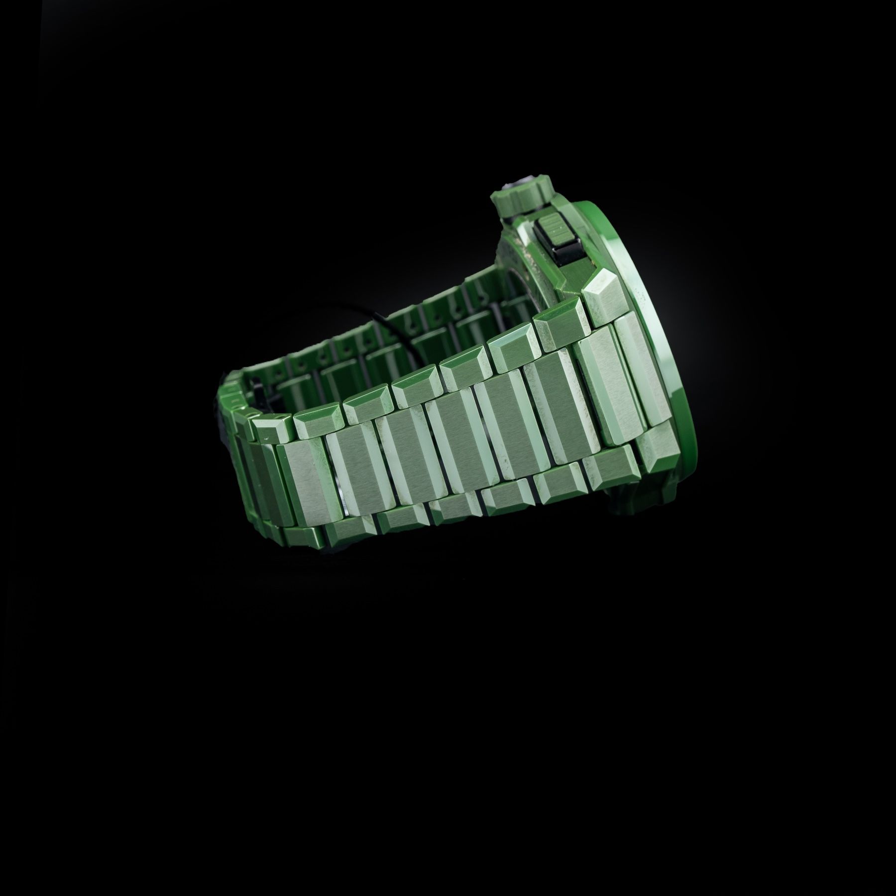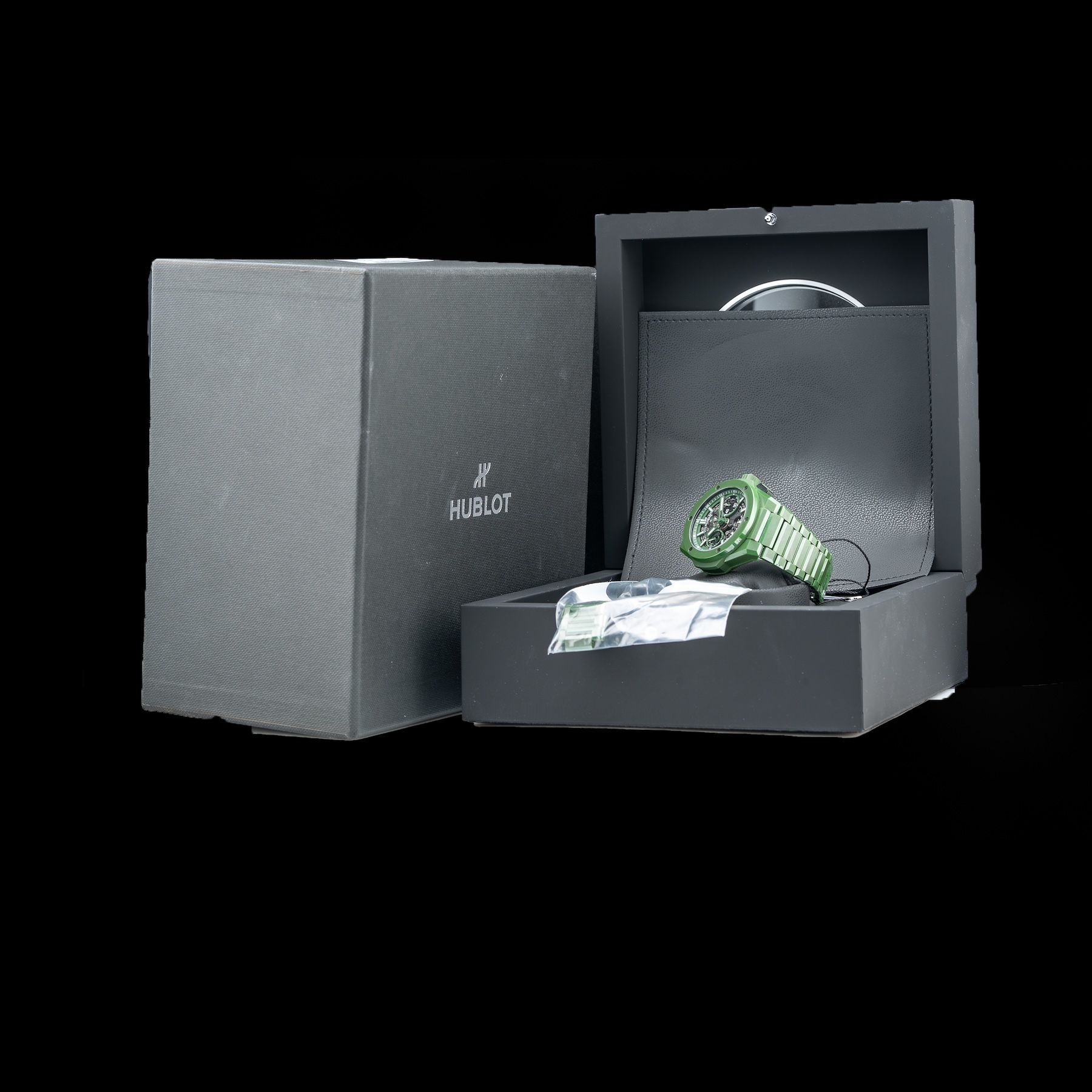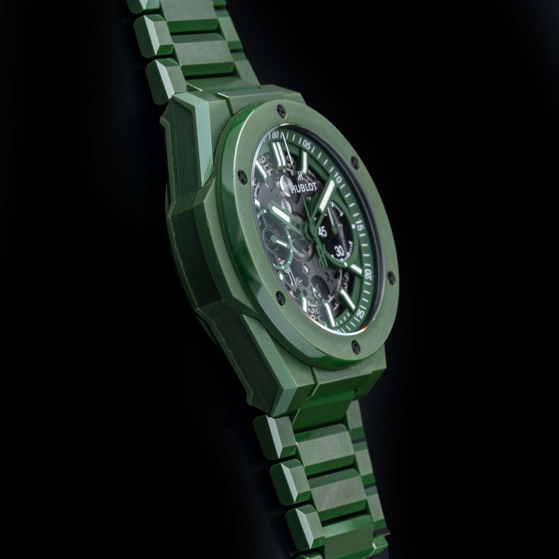 This watch features a 42mm ceramic case on ceramic bracelet. This watch also sports a green dial. Powered by an automatic movement. Water resistance up to 100 meters.