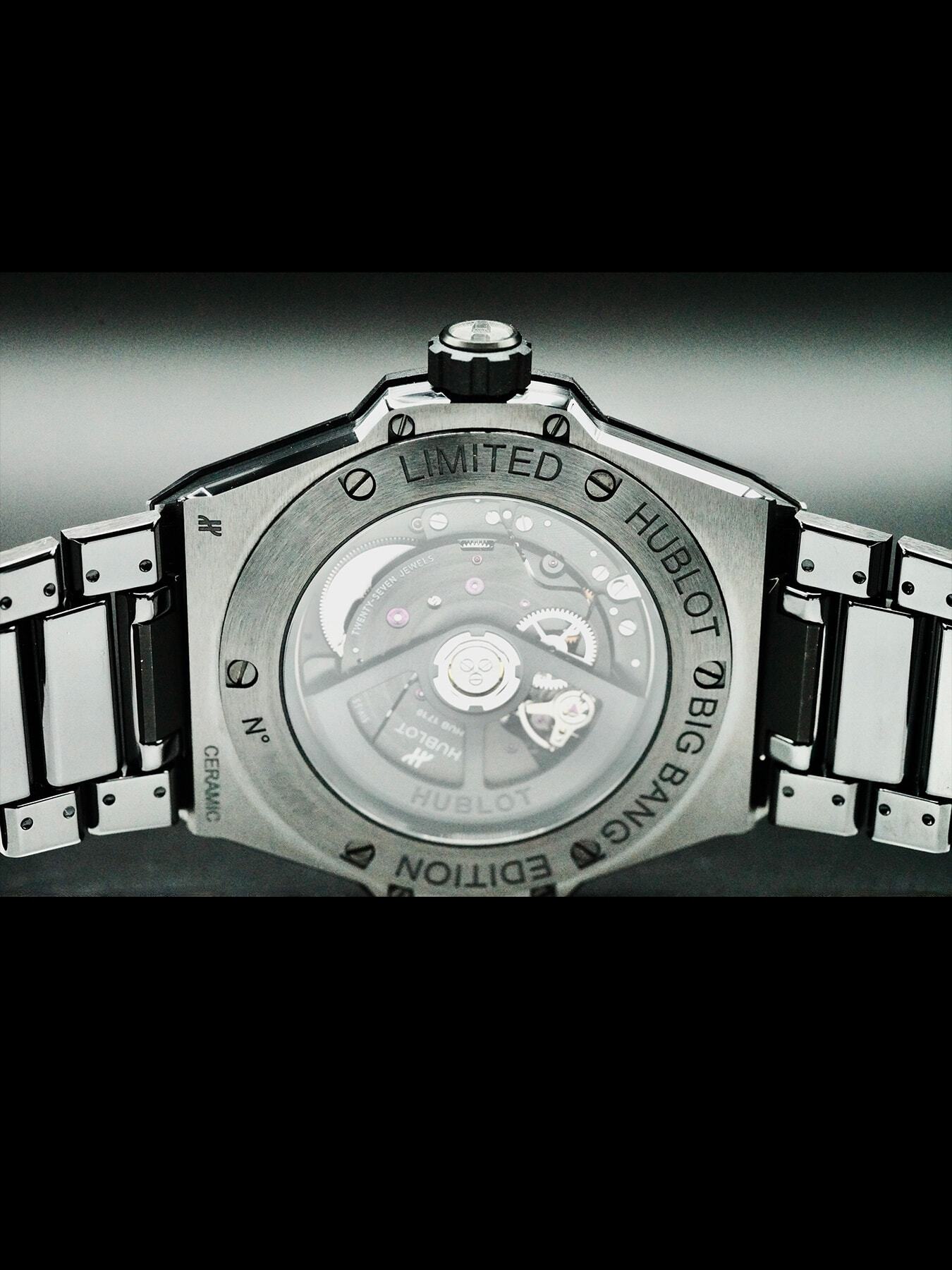 This watch features a 40 mm ceramic case and bracelet. This watch also sports a skeleton dial. Powered by a mechanical automatic movement. Water resistance up to 100 meters.