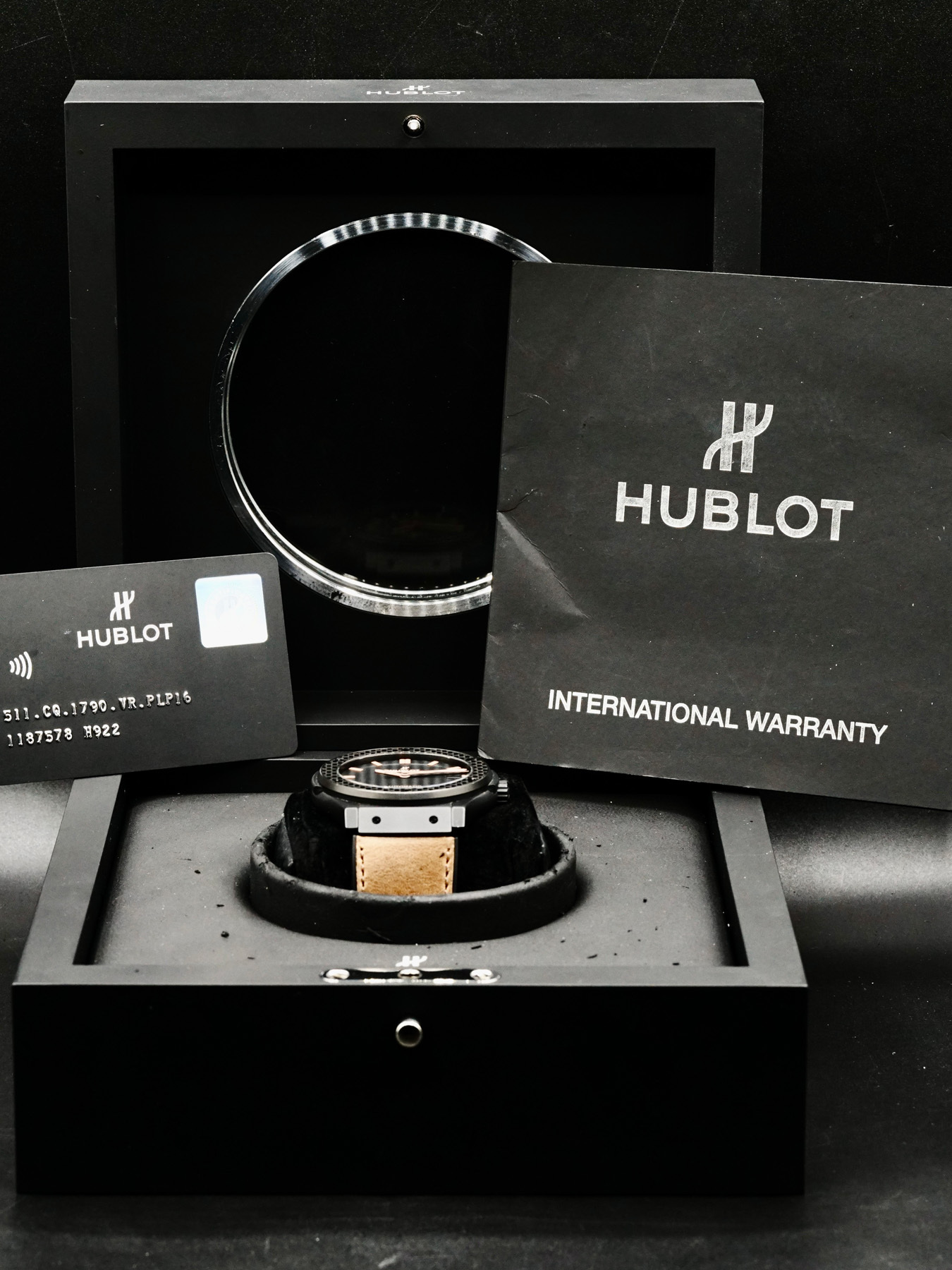 This Hublot Classic Fusion Special Edition 511.CQ.1790.VR.PLP16 is in GREAT condition. This watch includes its original box and Warranty card dated for August 2017. This watch has been fully authenticated and certified by Exquisite Timepieces.