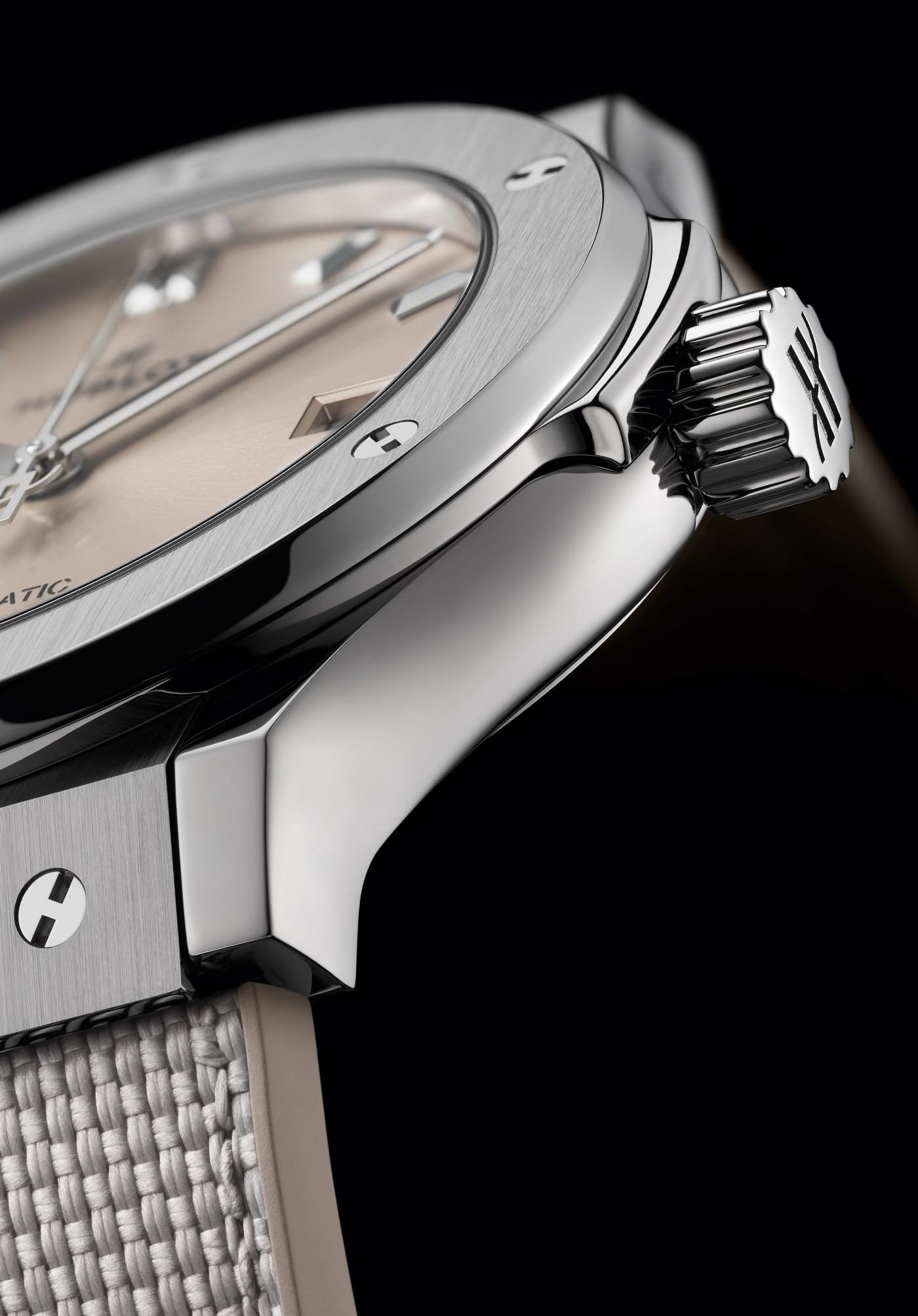 Titanium is extensively used by Hublot, specifically for its lightness. It displays the best relationship between resistance and weight of any material, which makes it an extremely popular material especially within aeronautics. It also stands out with its resistance to corrosion and its inertia in contact with the skin. Hublot only uses high quality, grade 5 titanium, the strongest there is. Once polished, this material retains a slightly bluish metallic sheen.