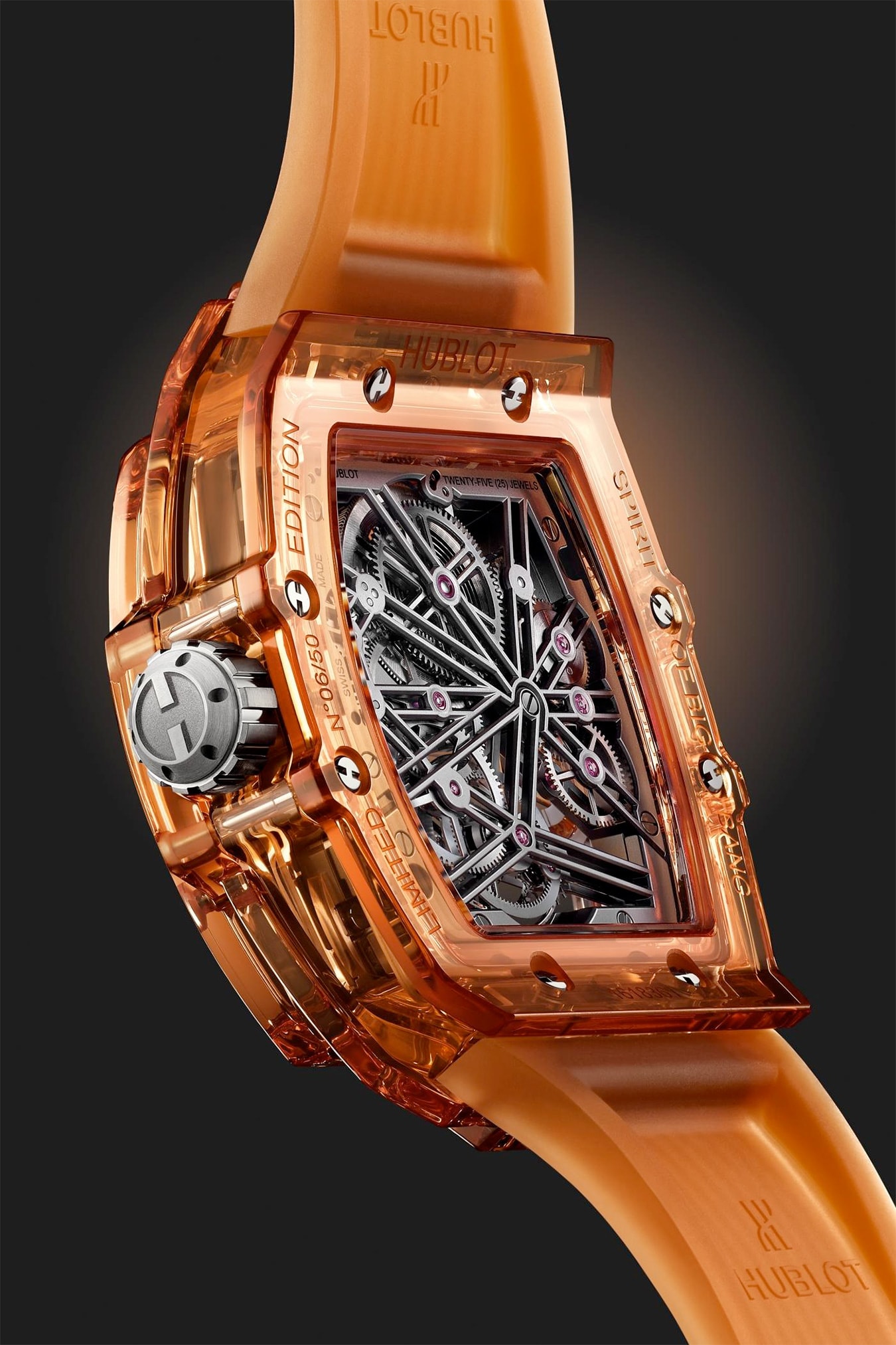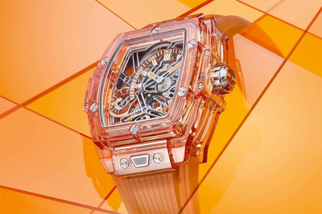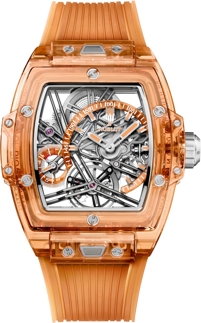 In search of the perfect fusion between movement and case, Hublot engineers and chemists have researched and developed a transparent material which reveals the heart of the watch, all while being robust enough to effectively protect the mechanism. That’s how the Manufacture has become the expert of synthetic sapphire, a material from which it derives its aesthetic qualities that are unique within watchmaking – transforming each watch into a work of art.