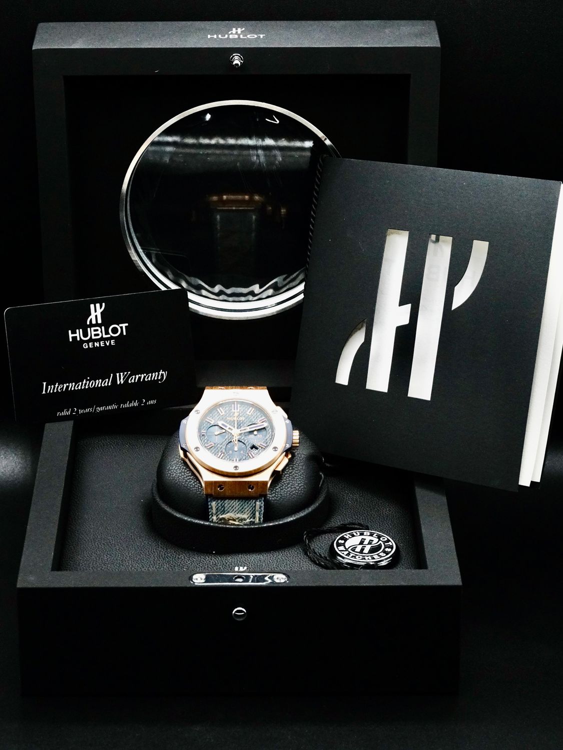 This Hublot Big Bang Jeans Gold 301.PL.2780.NR.JEANS is in GREAT condition. it has box, papers and warranty card not dated. This watch has been fully authenticated and certified by Exquisite Timepieces. Please note, the photos shown are of the actual watch you will receive.