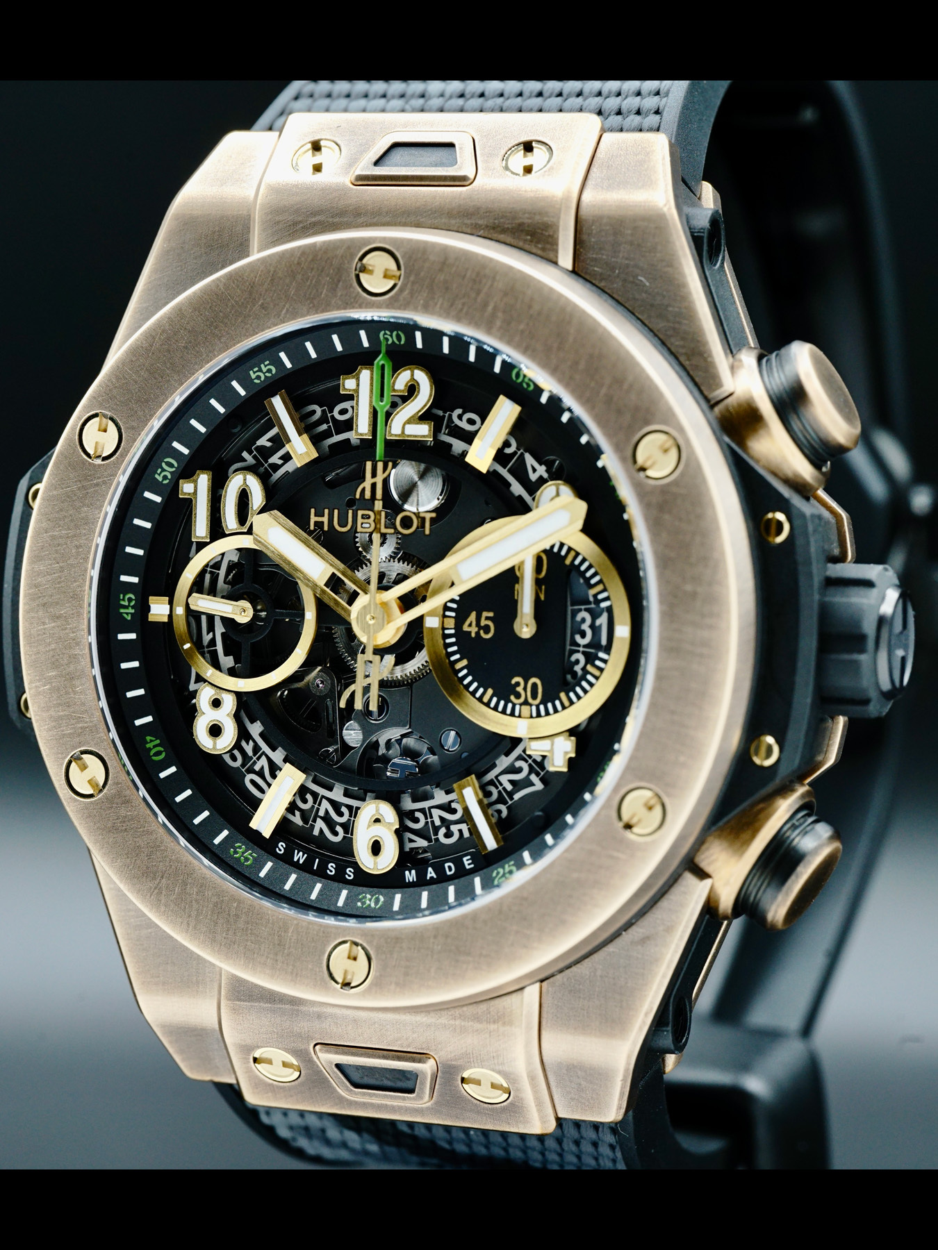This Hublot Big Bang Unico Bavaria 411.BZ.1149.VR.MDL17 is in EXCELLENT condition. This watch includes its original box, certificate of authenticity, and warranty card. Limited Edition of 100 pieces.