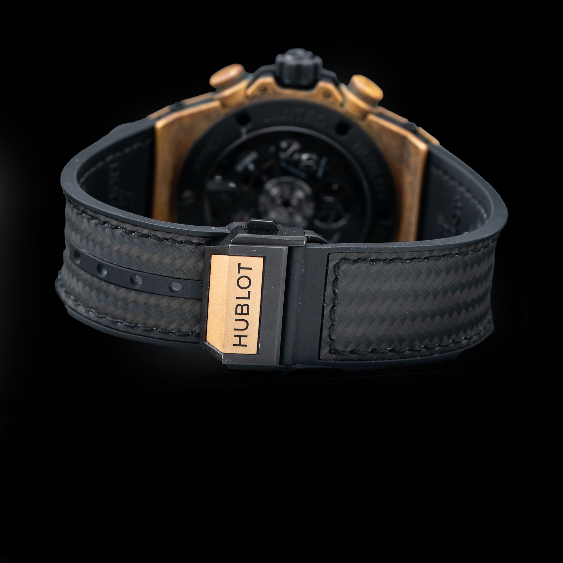 This Hublot 411.BZ.1149.VR.MDL17 Big Bang Unico Bavaria is in GREAT condition. It has box only, digital warranty. This watch has been fully authenticated and certified by Exquisite Timepieces. Please note, the photos shown are of the actual watch you will receive.