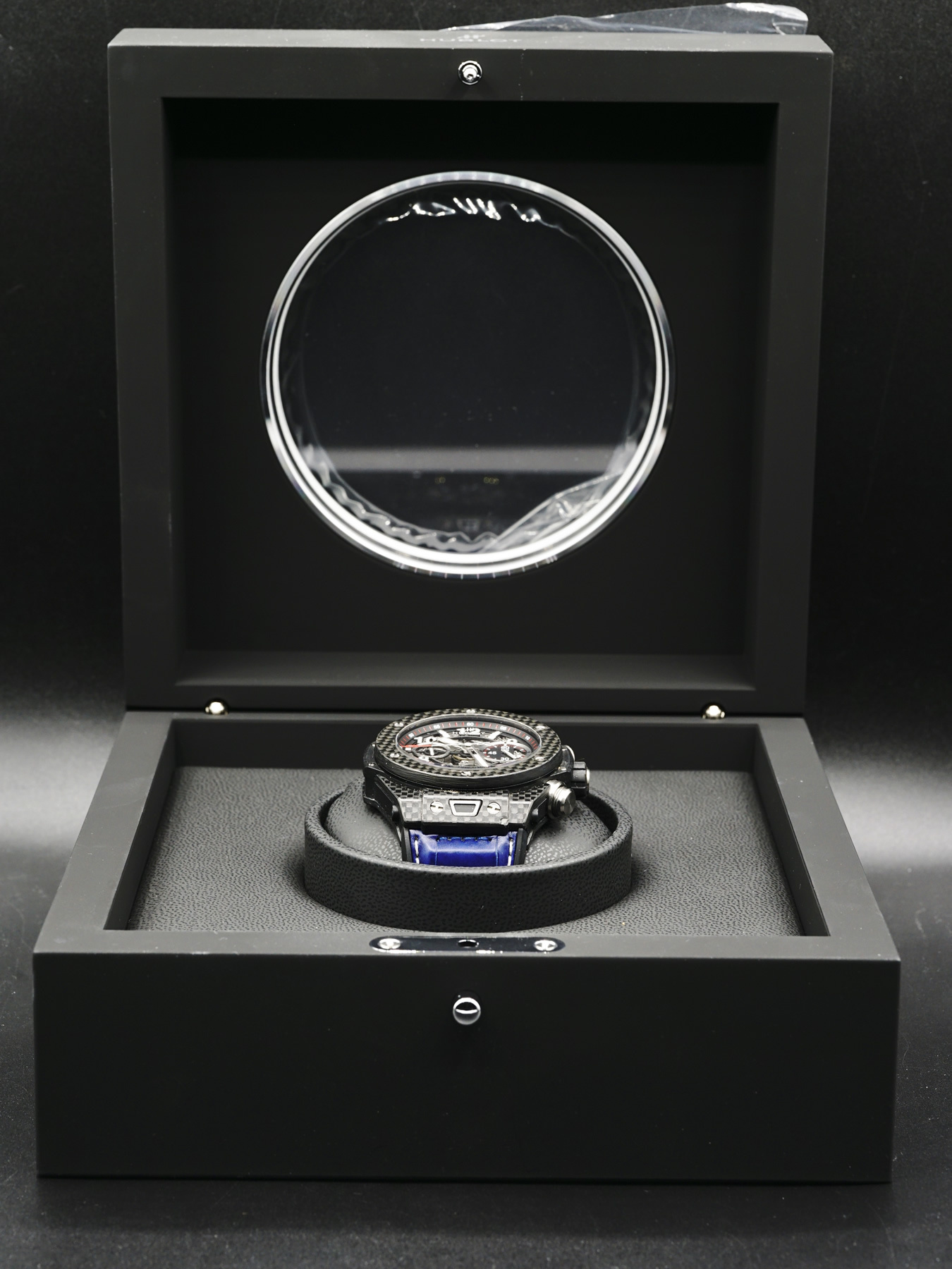 This Hublot Big Bang Unico Carbon is in EXCELLENT condition. This watch includes its original box and papers online.