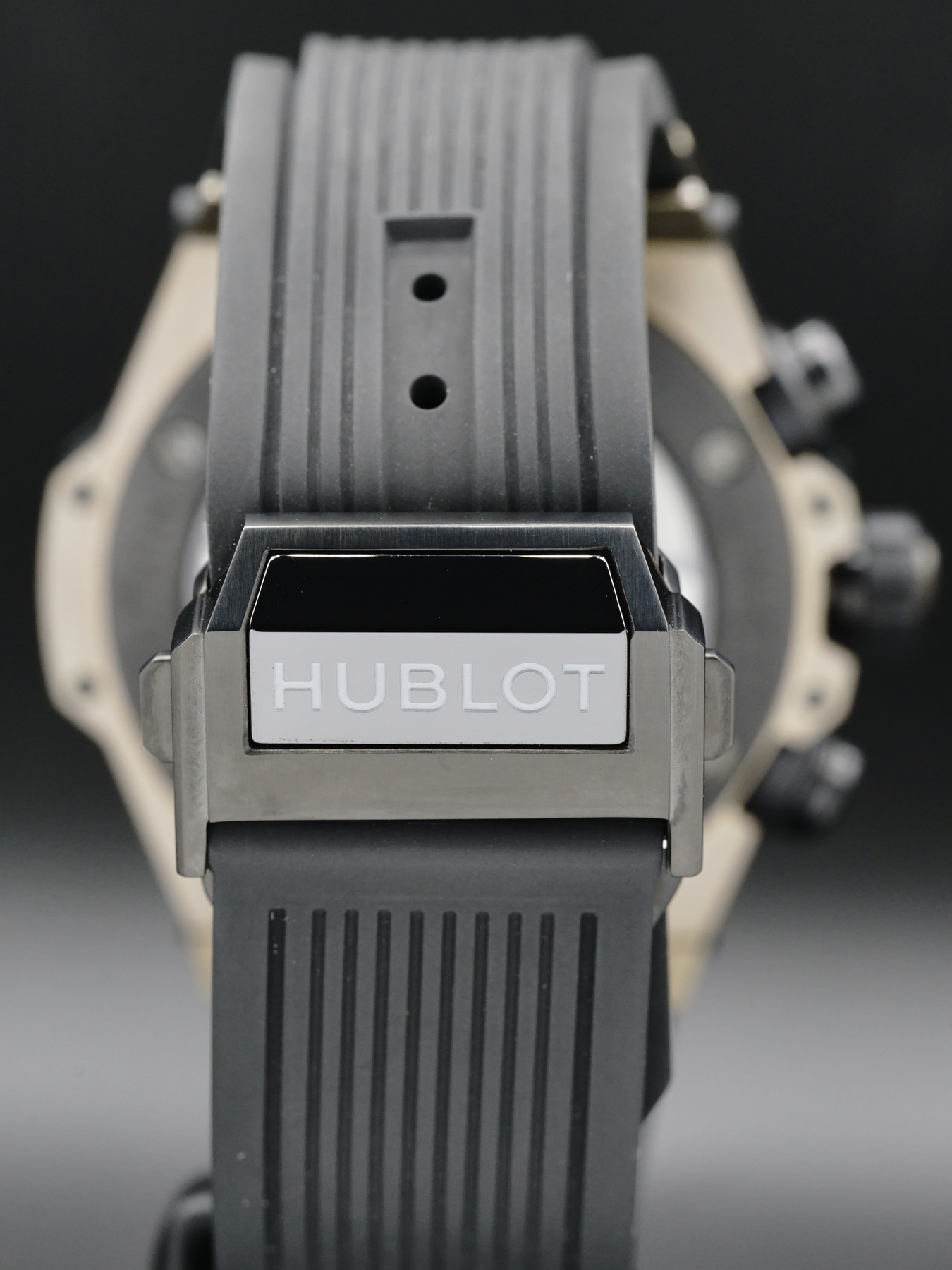 Powered by Hublot Calibre HUB1242 UNICO for a power reserve of approximately 72 hours. Water resistance up to 100 meters.