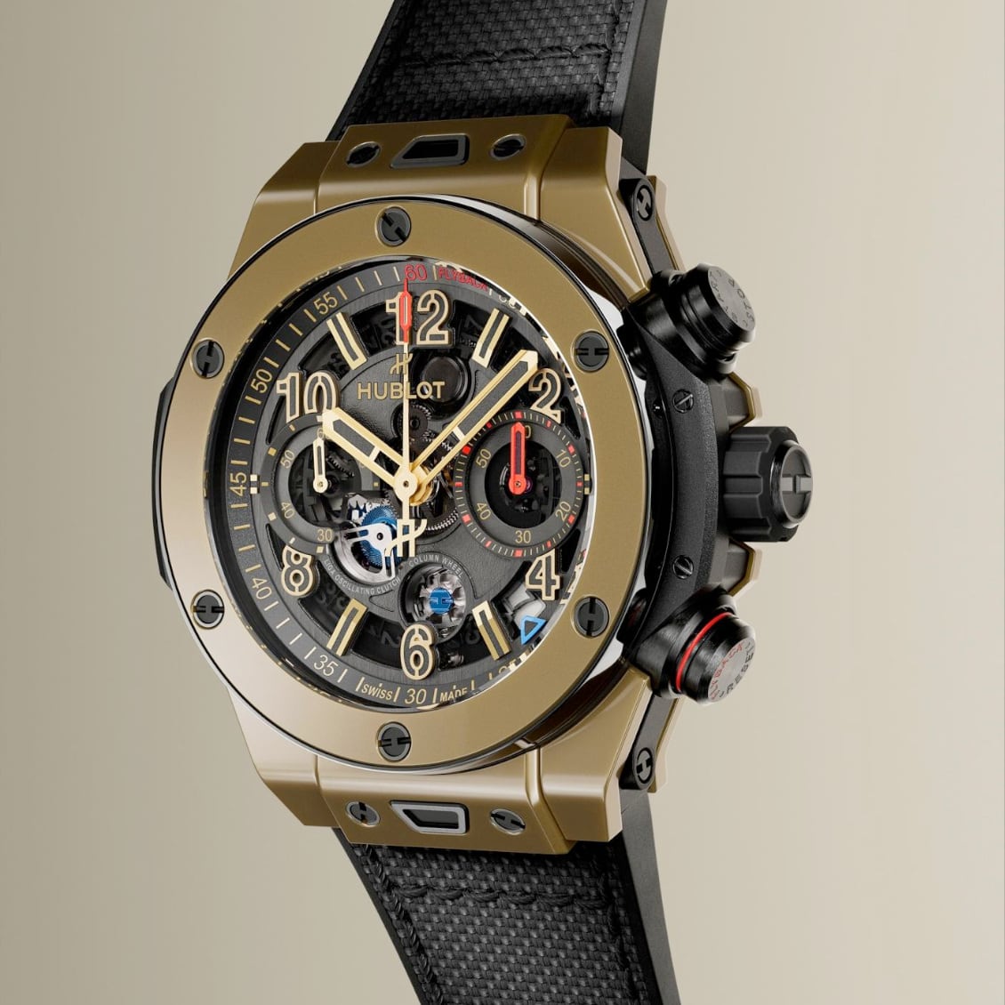 Launched in 2010, just a year after the debut of Hublot’s Manufacture, the Unico caliber has continuously evolved, with reworked components, optimized architecture and refined proportions. In 2018, the base caliber and chronograph module became a fully integrated caliber, re-engineered for higher performance and trimmed to fit into multiple cases. Sixteen years after its launch, that evolution continues, with a caliber that is even more visible, taking center stage.