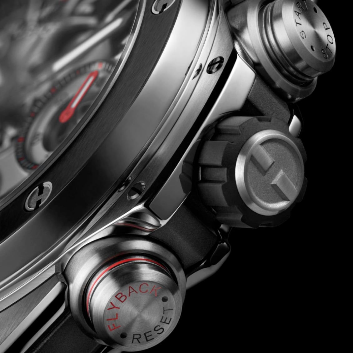 The Big Bang Reloaded stays true to its iconic design while asserting a bolder, sportier character. The 44 mm case features amplified architecture with a two-part bezel, creating sharper contrasts and enabling dynamic interaction between materials and finishes. The multilayer dial plays with textures and surfaces, giving depth and a technical edge. The chronograph becomes a standout feature, with a colored ring on the 4 o’clock push-piece, a redesigned minutes counter at 3 o’clock, a flyback inscription and the date repositioned between 4 and 5 o’clock.