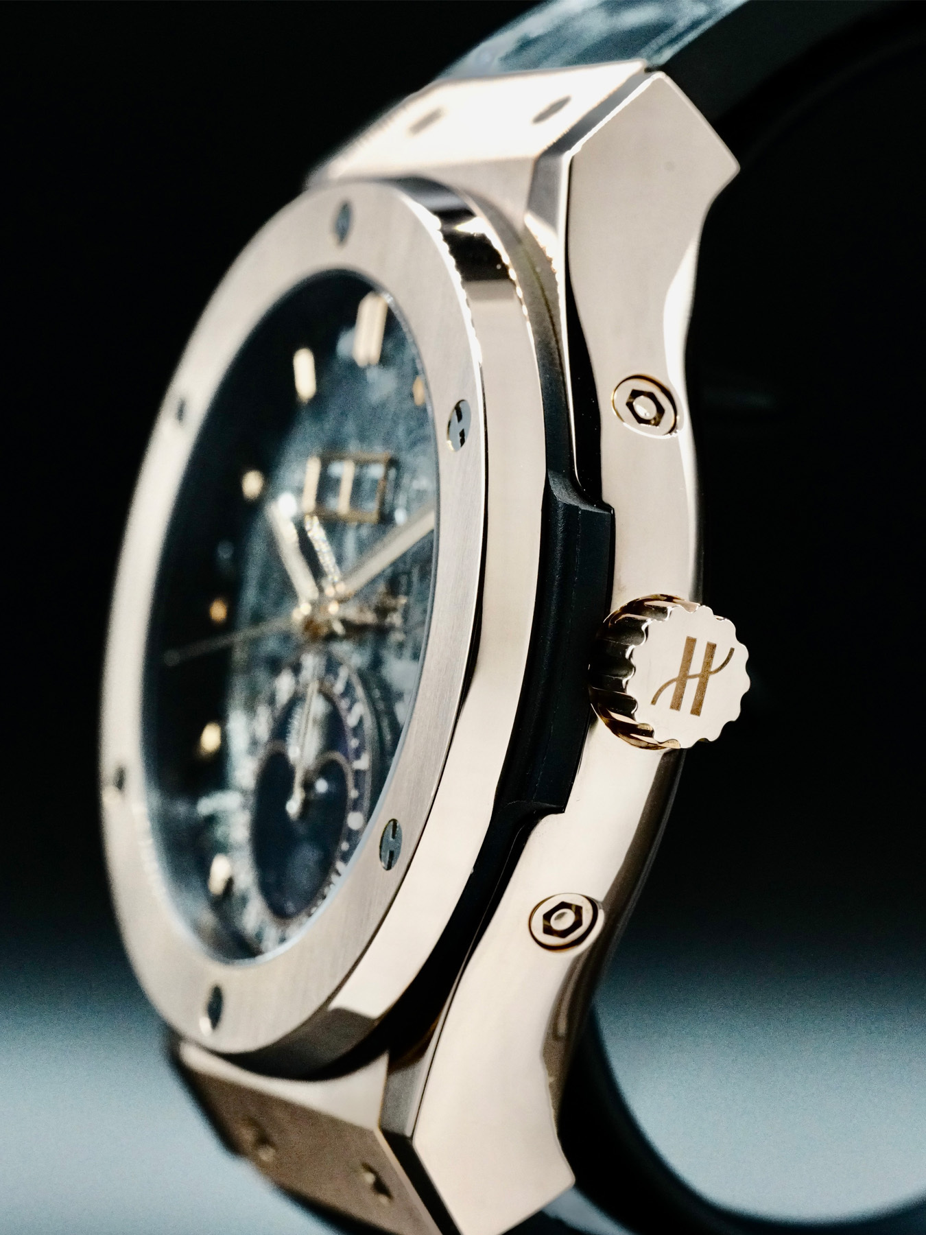 Self-winding Moonphase Movement powered by Hublot Calibre HUB1131 with a power reserve of approximately 42 hours.