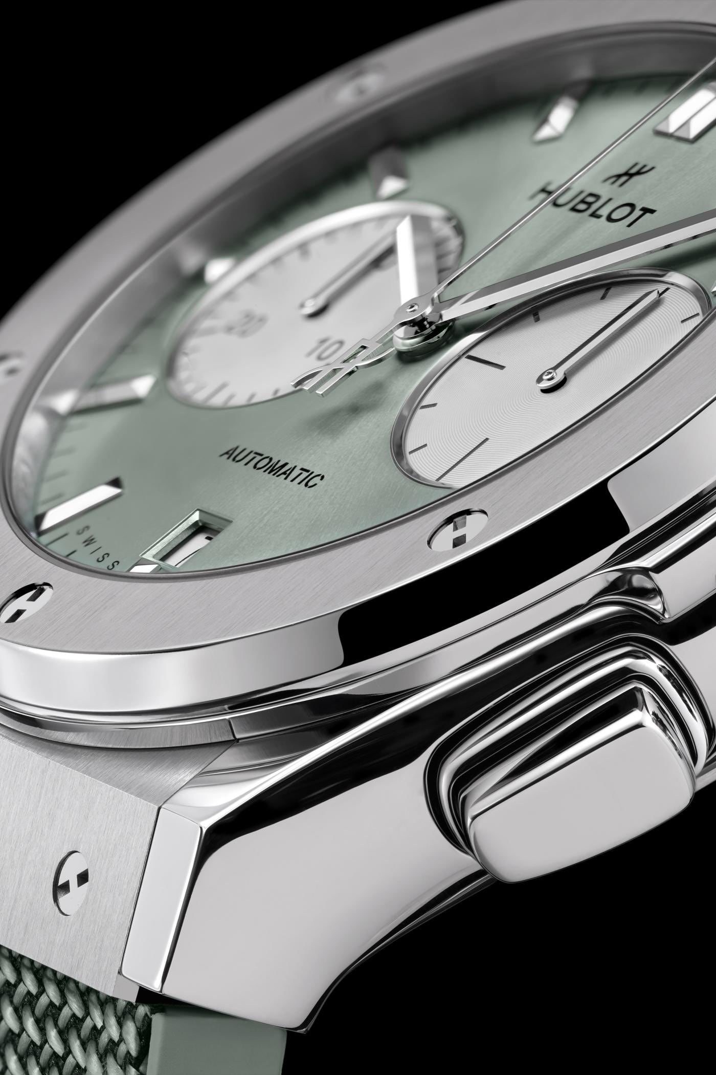 Titanium is extensively used by Hublot, specifically for its lightness. It displays the best relationship between resistance and weight of any material, which makes it an extremely popular material especially within aeronautics. It also stands out with its resistance to corrosion and its inertia in contact with the skin. Hublot only uses high quality, grade 5 titanium, the strongest there is. Once polished, this material retains a slightly bluish metallic sheen.