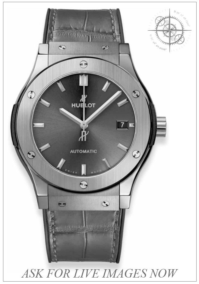 This Hublot Classic Fusion Titanium Green 45mm 511.NX.8970.LR is in GREAT condition. This watch includes its Original Box, Original Papers and Warranty Card Not Dated. This watch has been fully authenticated and certified by Exquisite Timepieces.