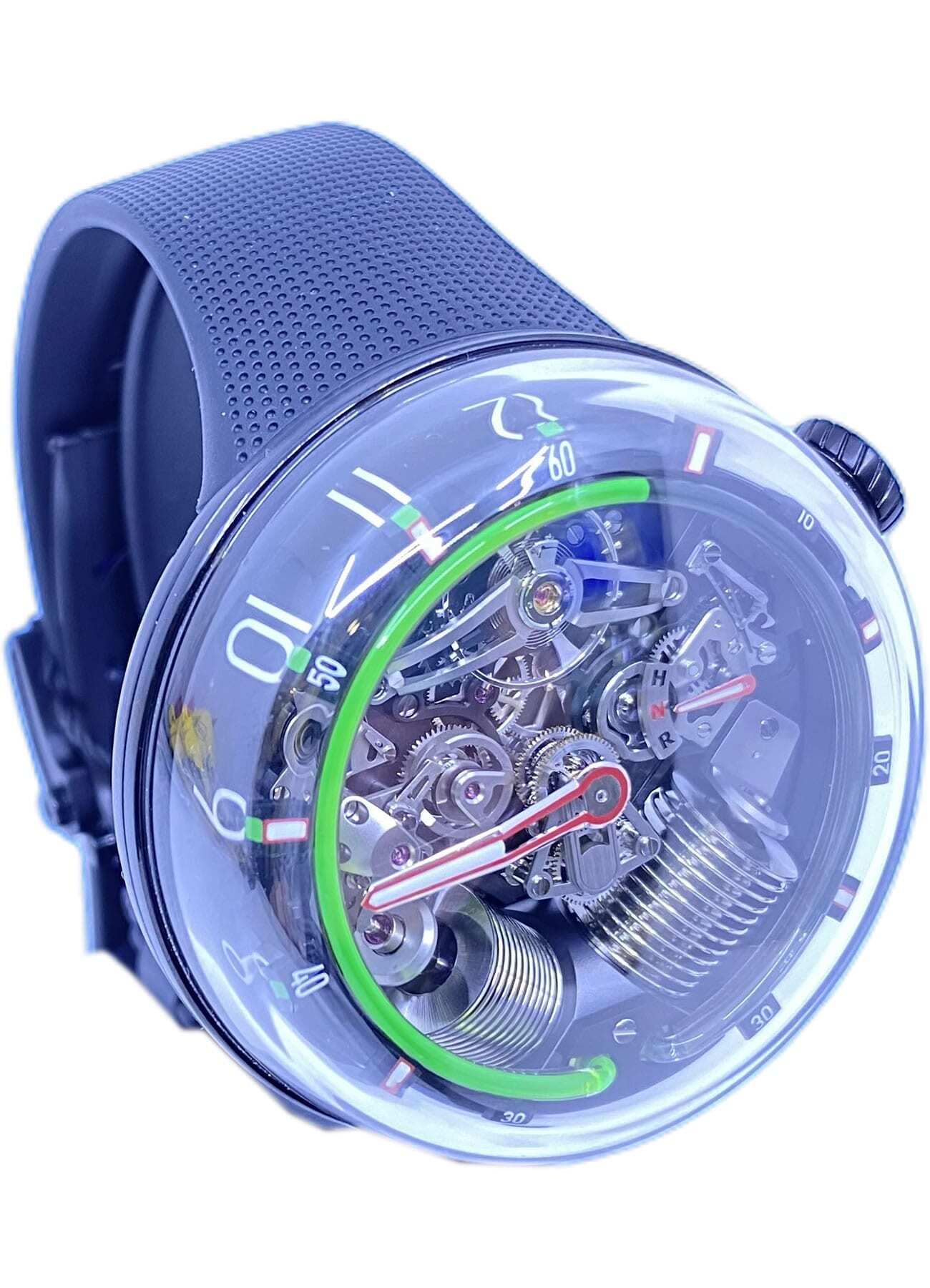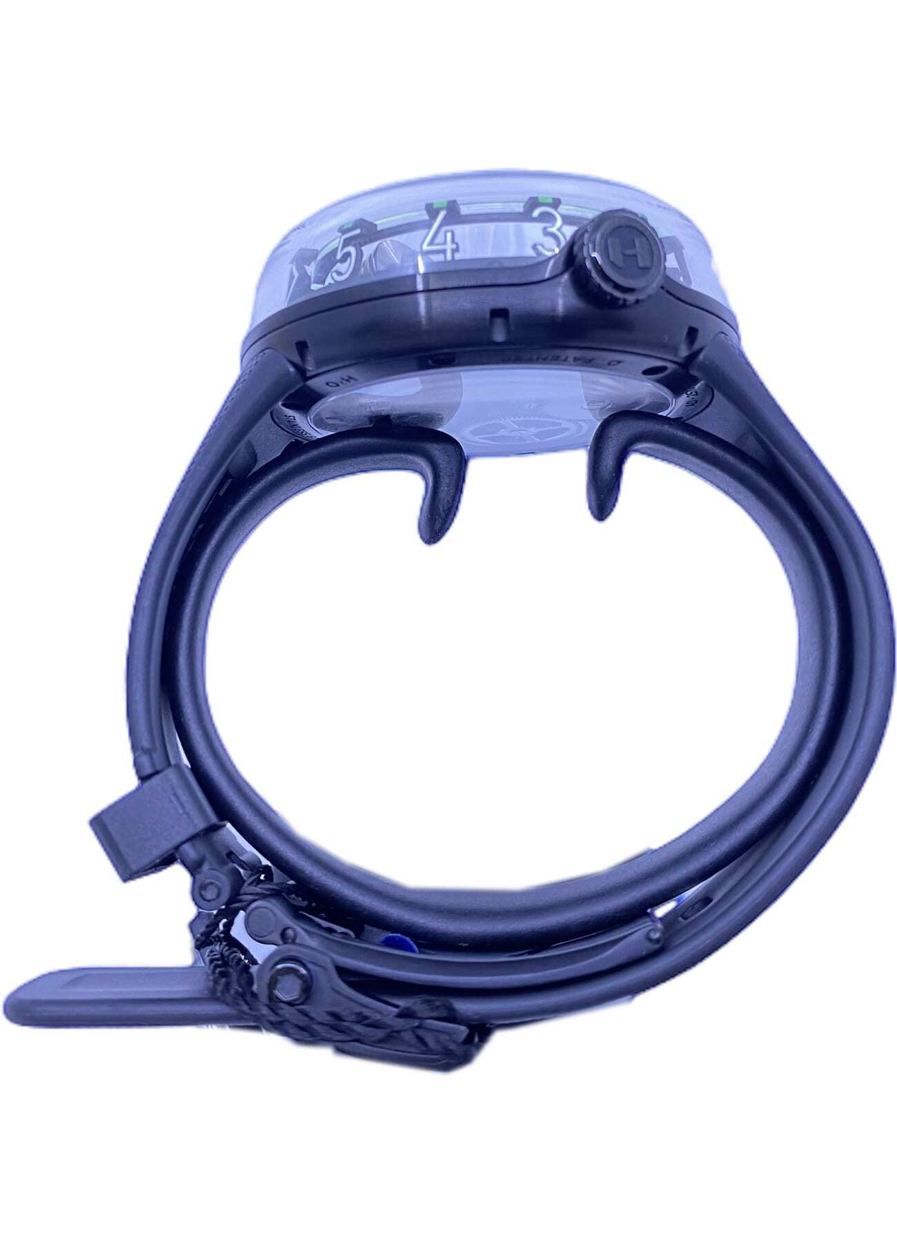 - This timepiece features a 50mm titanium case paired with a high quality rubber strap. It showcases a distinctive black and green dial and is powered by a precise manual winding movement. The watch is designed with a water resistance of up to 30M.