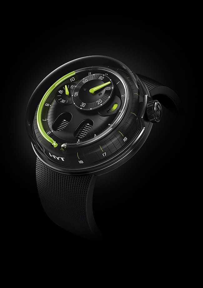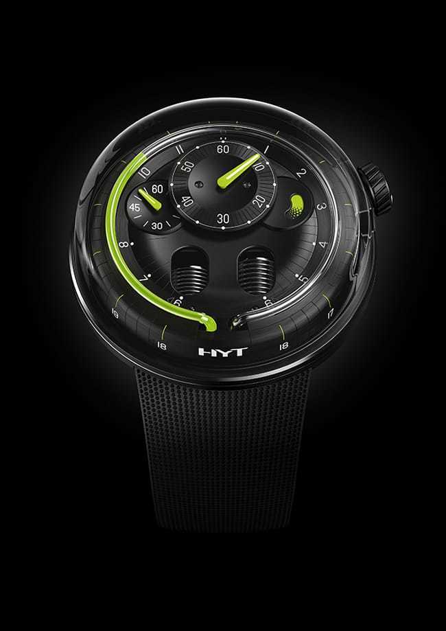 Mechanical with manual winding, exclusive HYT calibre, 65 hours power reserve