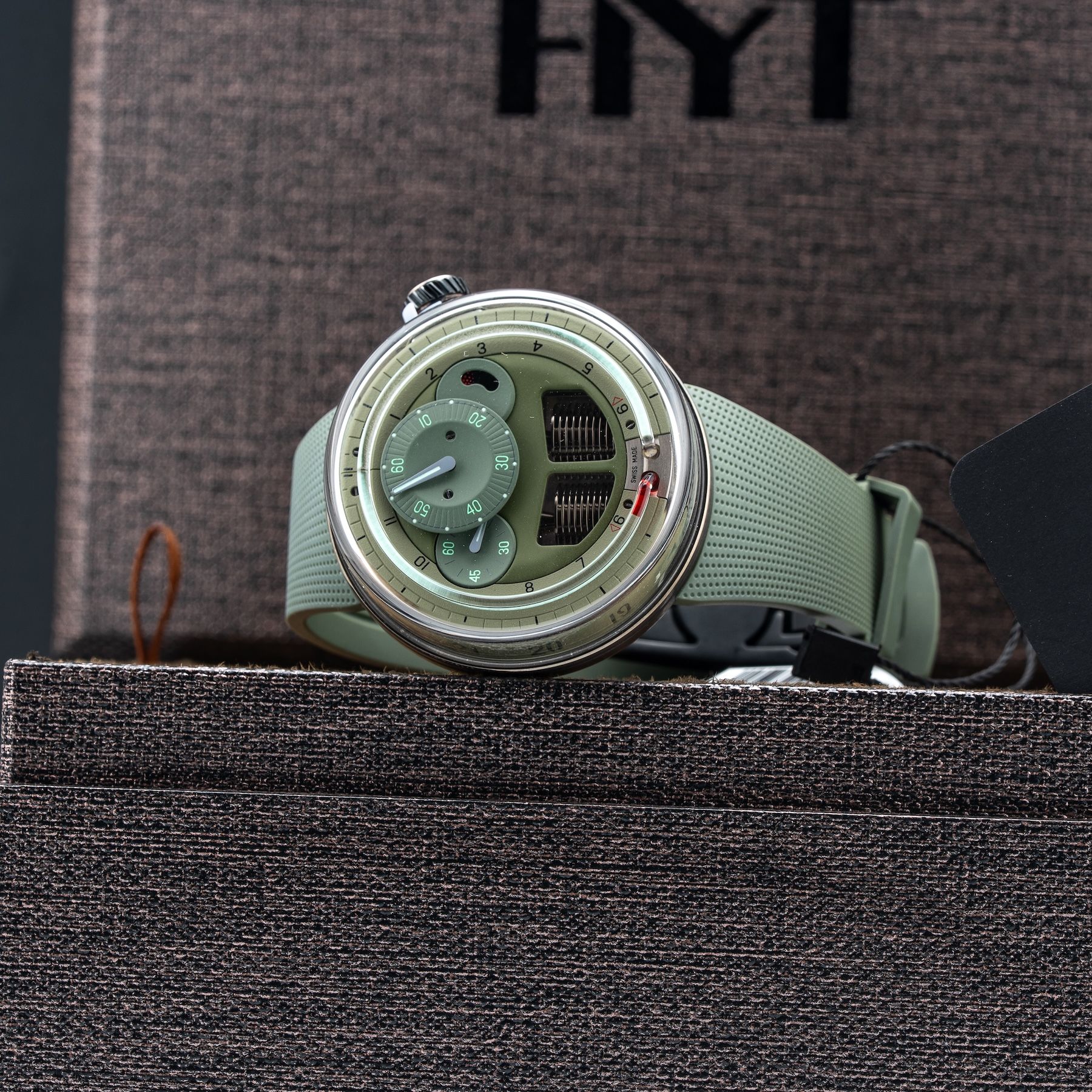 The passage of time is what earths human existence. it continually reminds us that each moment of our lives is part of a big picture that bears our unique signature. with its latest H0 timepiece, HYT showcases the bare essentials of time’s transience in a watch that is as grounded as it is elevated. fluidity is the language of the design’s appearance and message. this is translated clearly through sleek lines and shaping, subtly punctuated by splashes of colour and underlying utilitarian confidence. the visualization of time’s motion by HYT is all about context – and content.