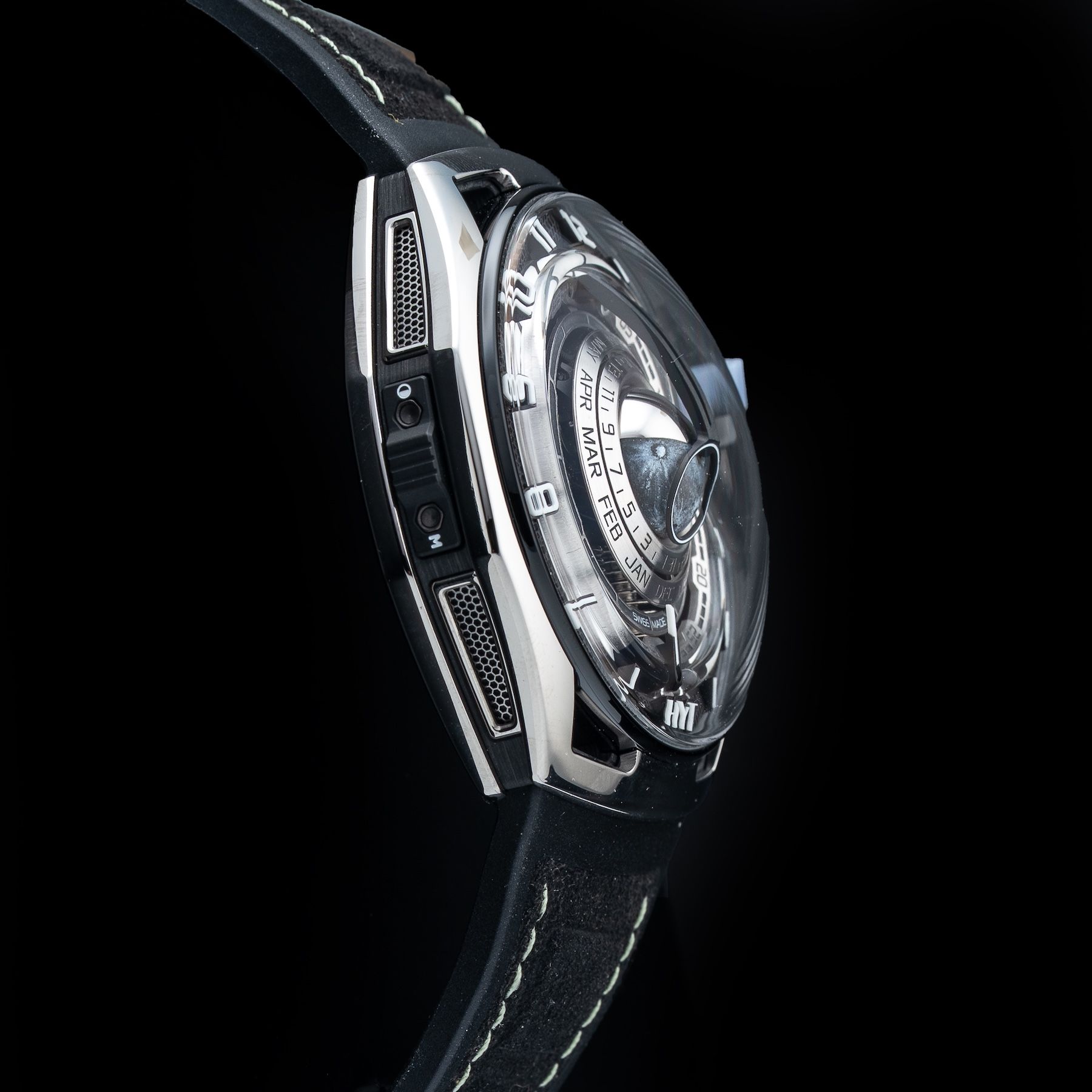 This HYT H02981-A Moon Runner Grey Ghost Limited Edition is in GREAT condition, it has box, papers and warranty card. This watch has been fully authenticated and certified by Exquisite Timepieces. Please note, the photos shown are of the actual watch you will receive.