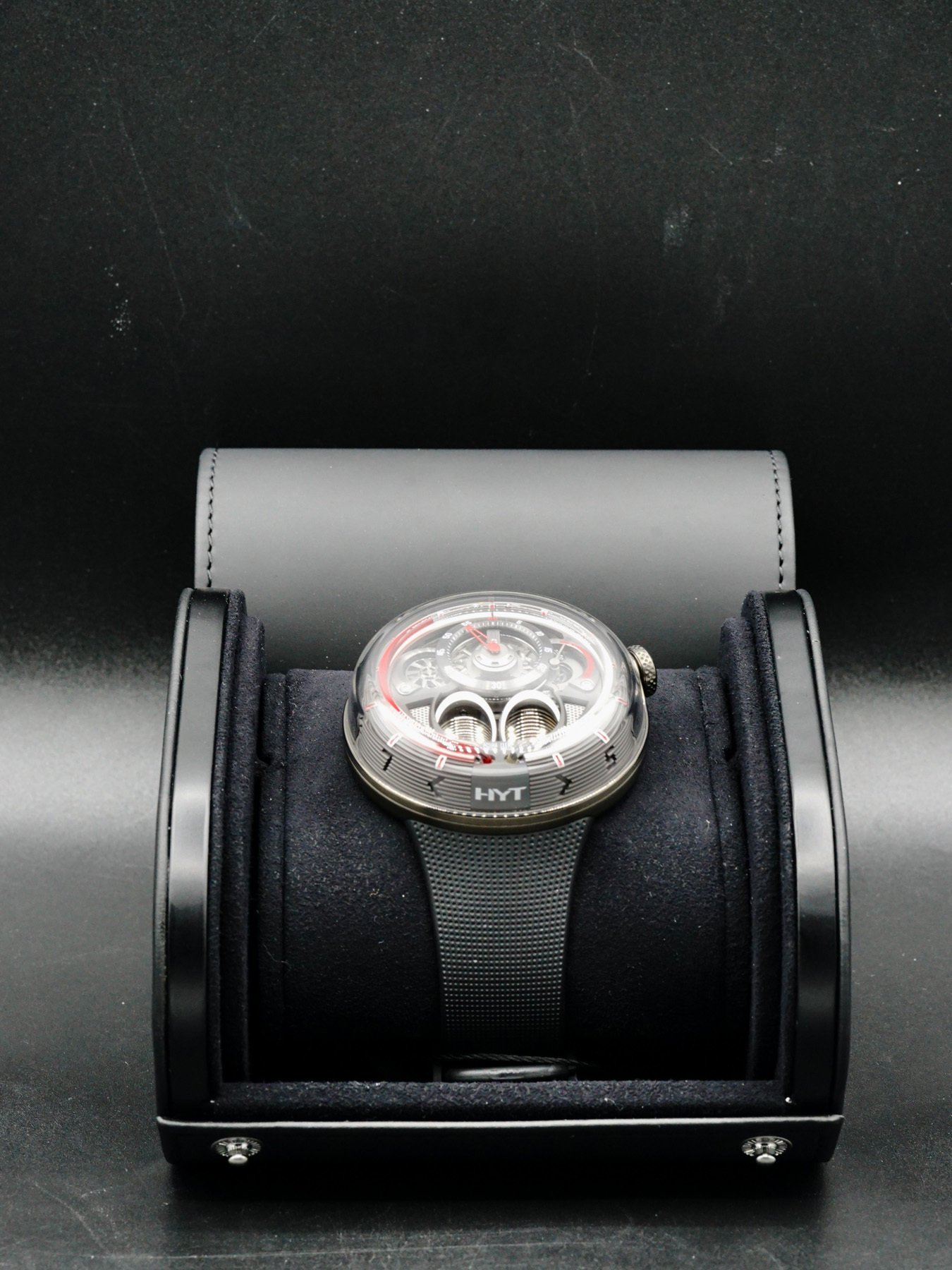 This HYT H1.0 Red is in EXCELLENT condition. This watch includes its original box, quick guide, and international warranty certificate dated for June 2019.