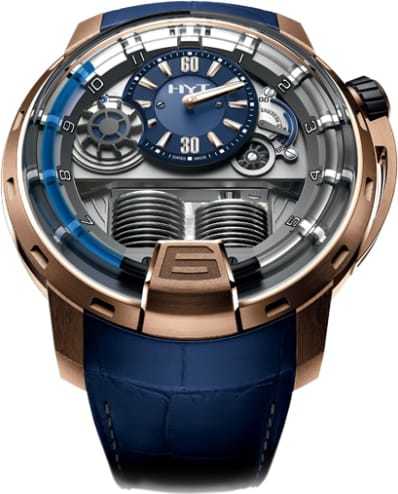 An encounter between fine watchmaking and fluid mechanics. one might say a utopia. shattering all certainties, steamrollering conformity, the idea that led to the h1 was simple and consisted of two flexible reservoirs fixed to each end of a capillary. in one was an aqueous liquid filled with fluorescein, and in the other, a transparent viscous liquid. to keep them separate: the repulsive force of the molecules in each liquid, with a meniscus to mark the boundary between the two. as the hours go by, the fluorescent liquid advances.
