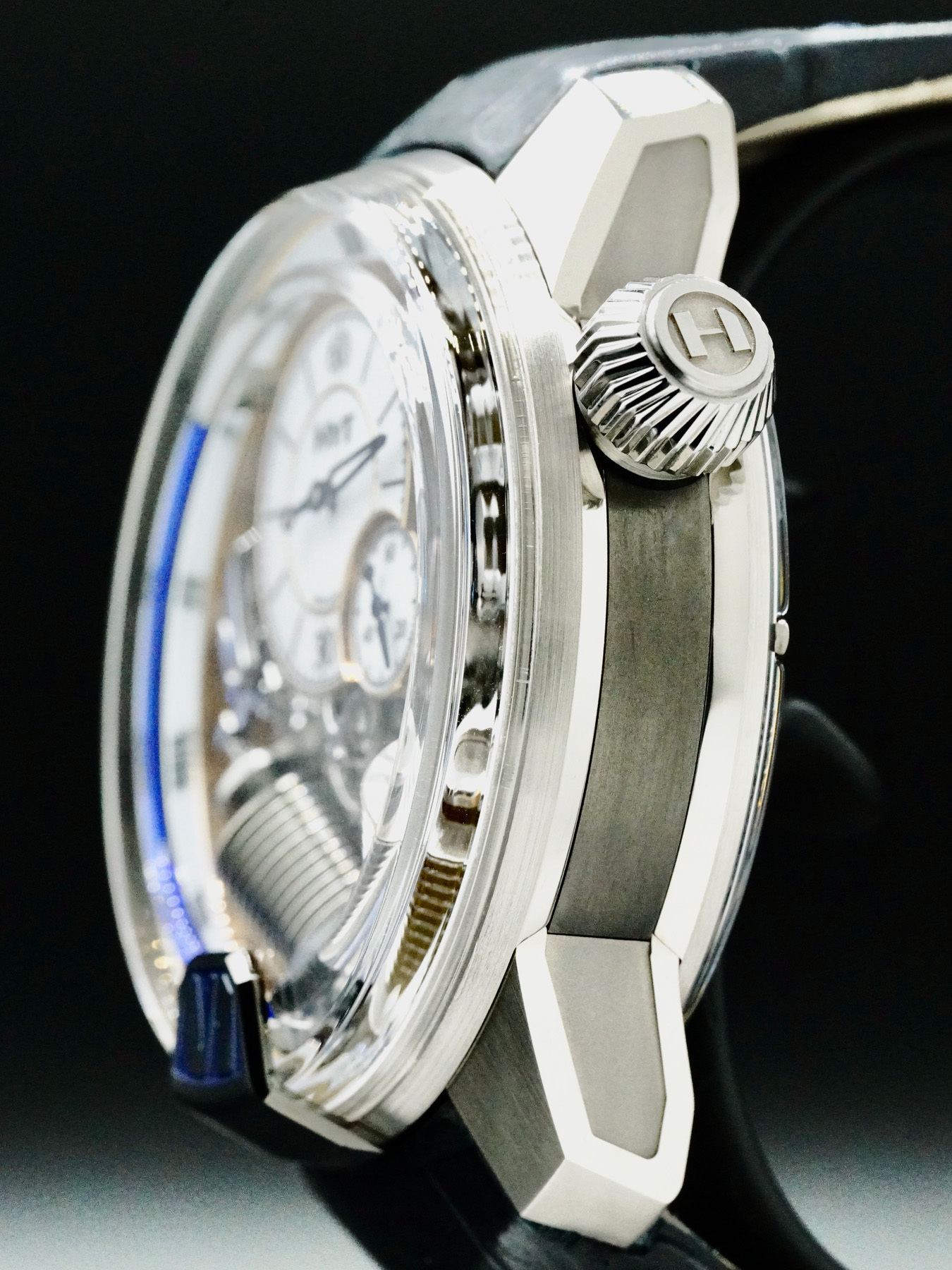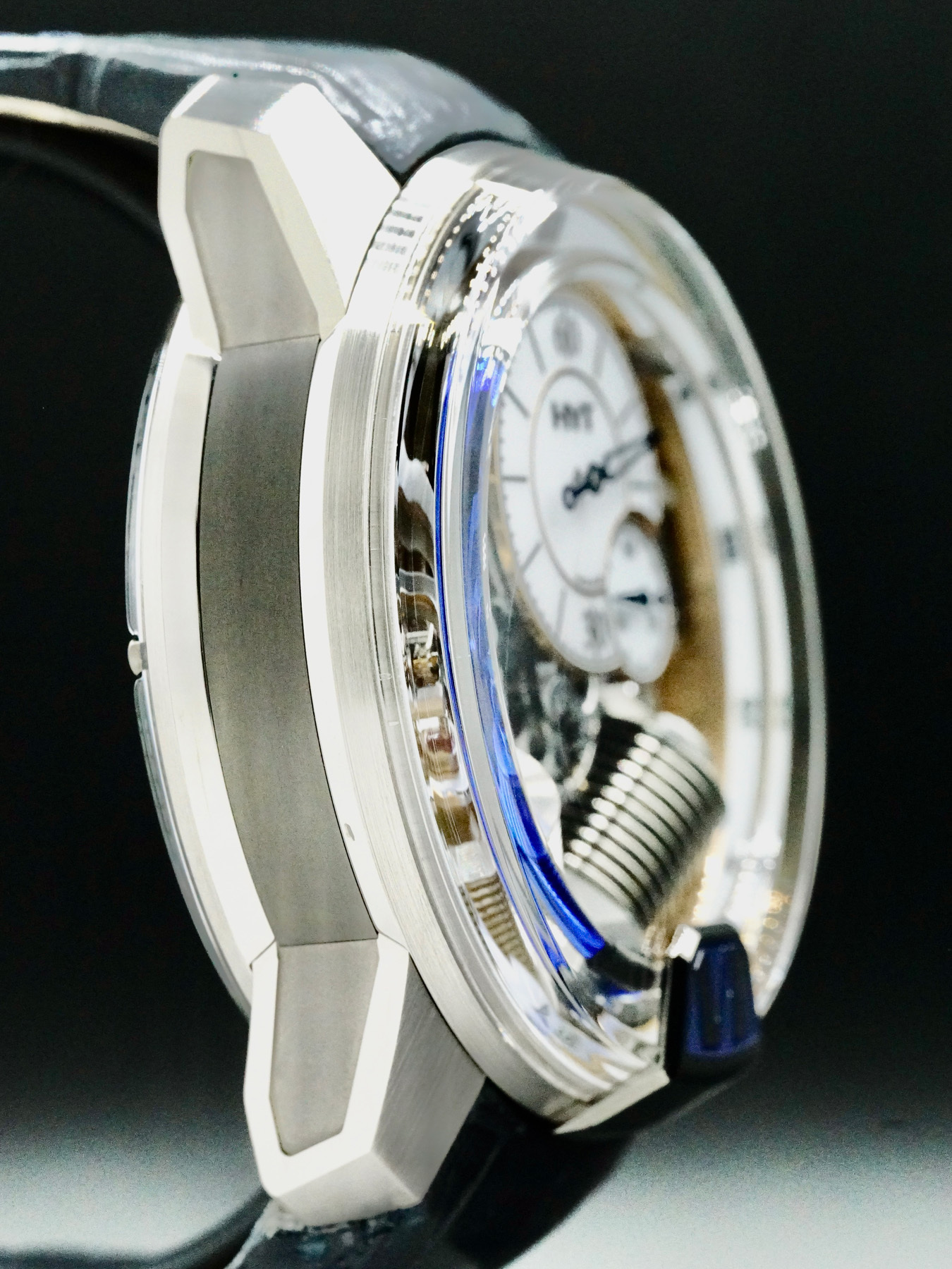 Limited Edition HYT H20 watch. The watch features a 49mm Titanium case & a Skeleton dial. Manual Wind movement. This H20 watch is limited to only 50 pieces.