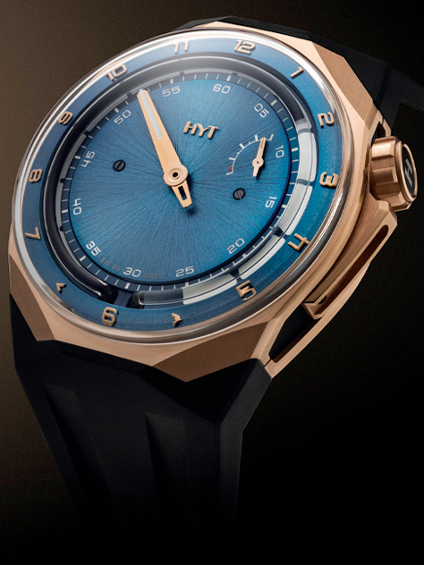 The case is in 5N gold complemented by DLC titanium, adding a superior preciousness and stylishly enhancing the midnight blue watch face.