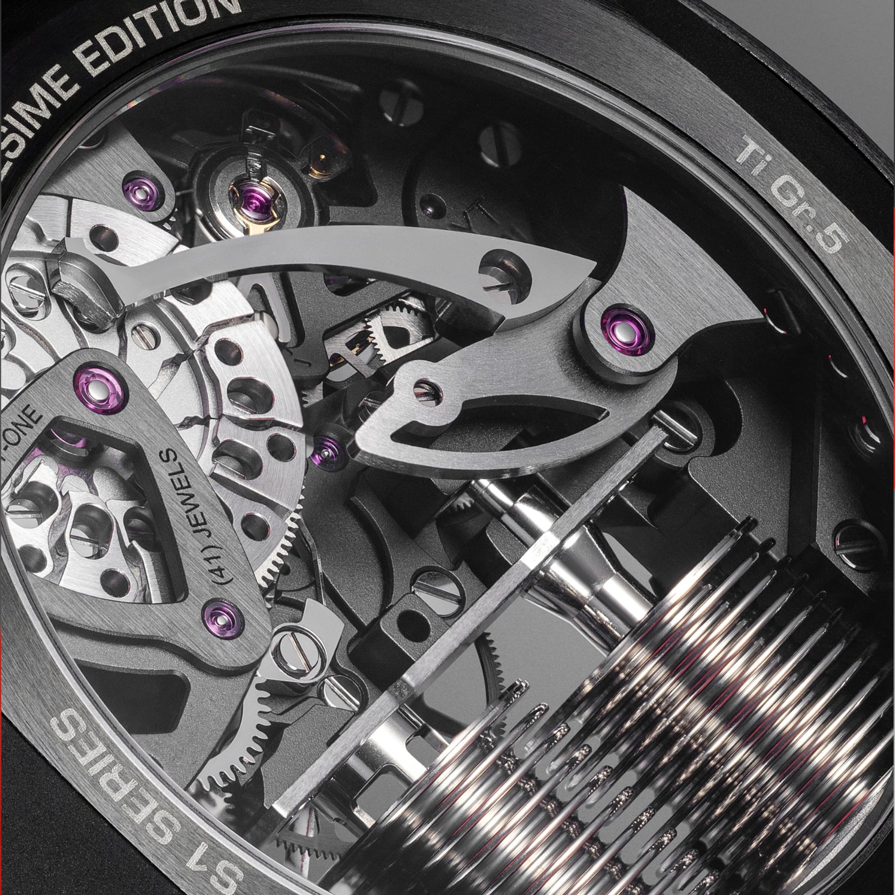 Driving the show is the manual 501‑CM calibre, a 352‑component hydromechanical “power plant” with 72 hours of autonomy. Two bellows at 6 o’clock push and pull immiscible red and transparent liquids through a 0.8 mm borosilicate capillary, a patented system that transforms the boundary between them into a moving hour marker.