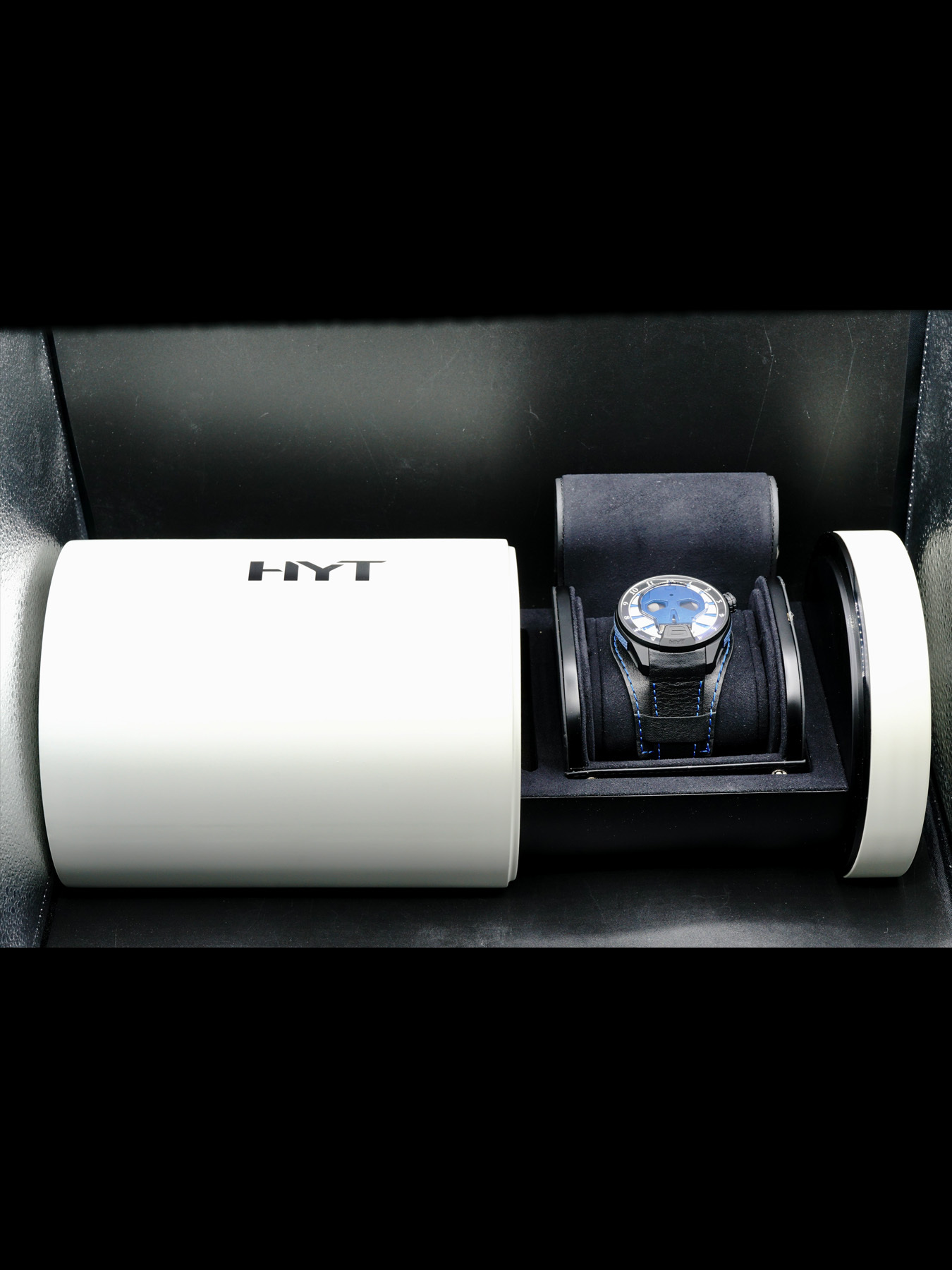 This HYT Skull Axl Rose Limited Edition 151-DL-47-NF-BV is in EXCELLENT condition. This watch includes its original box and user guide. Brand new watch and was sent to HYT service to have the leather strap put on.