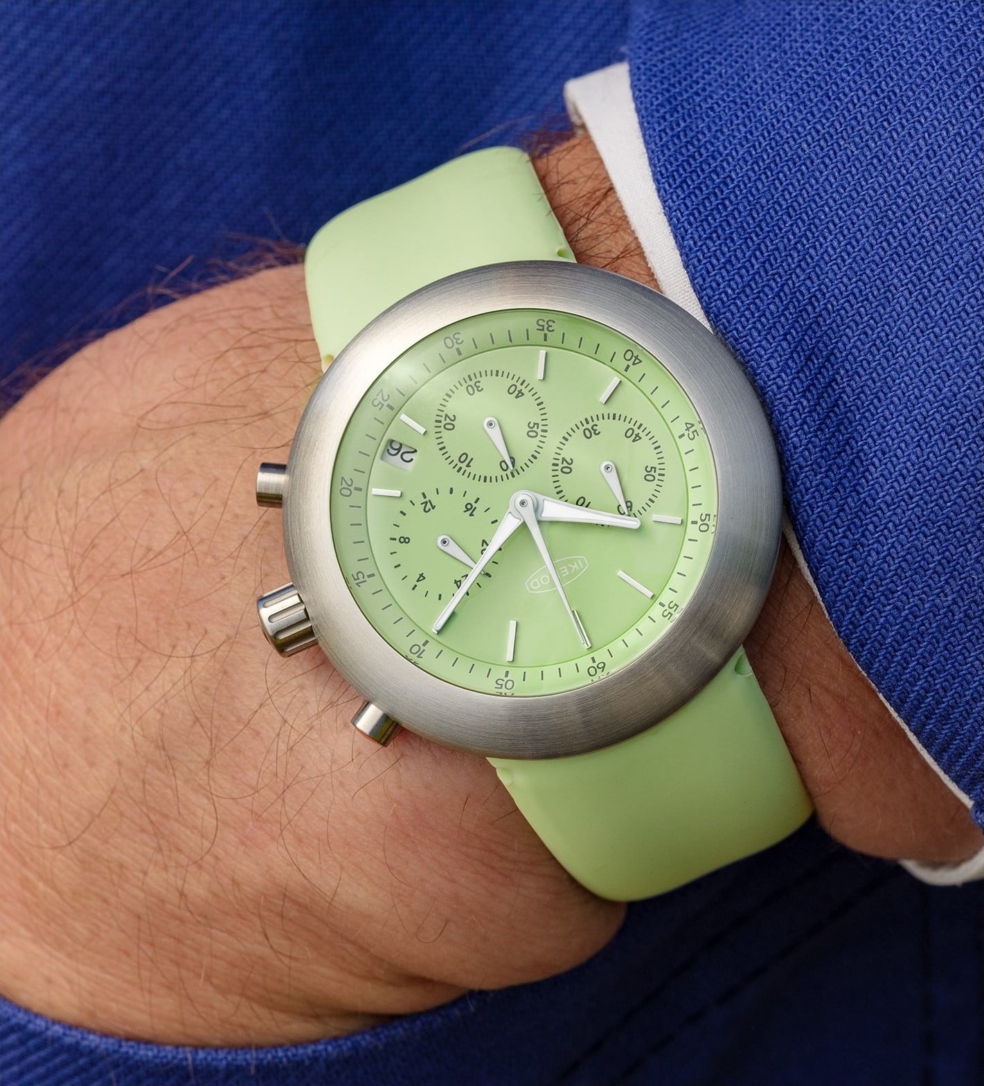 Chronopod Limited Edition. In 2001, Ikepod designed two pistachio-colored Hemipode Gen1 prototypes with a strap.