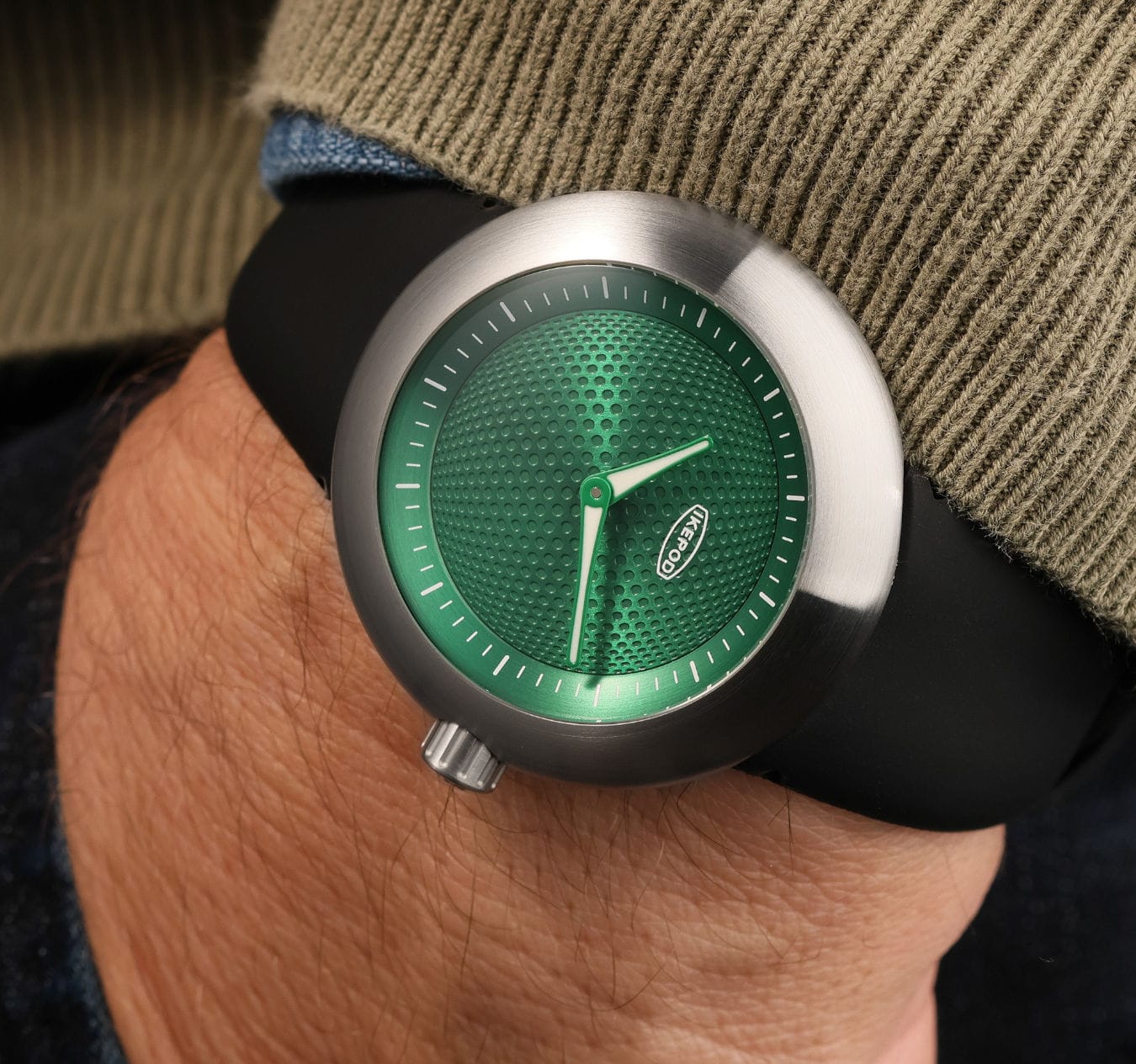 Green dial "optical art", hours index on the inner ring