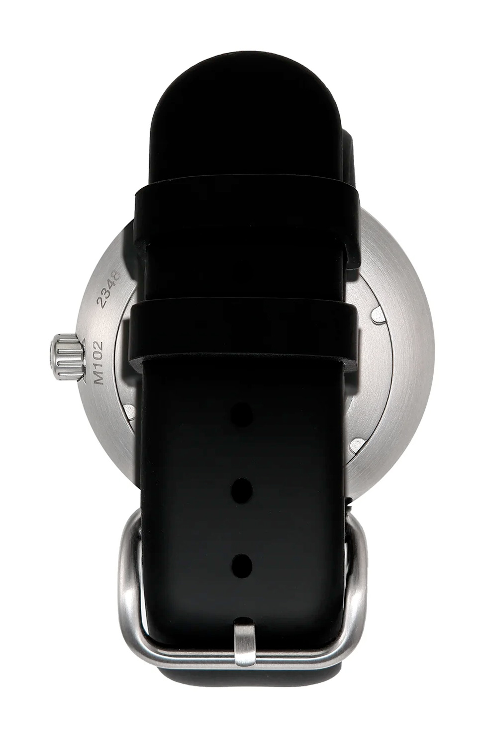 - This timepiece features a 46mm steel case paired with a high quality rubber strap. It showcases a distinctive black dial and is powered by a precise automatic winding movement. The watch is designed with a water resistance of up to 50m.