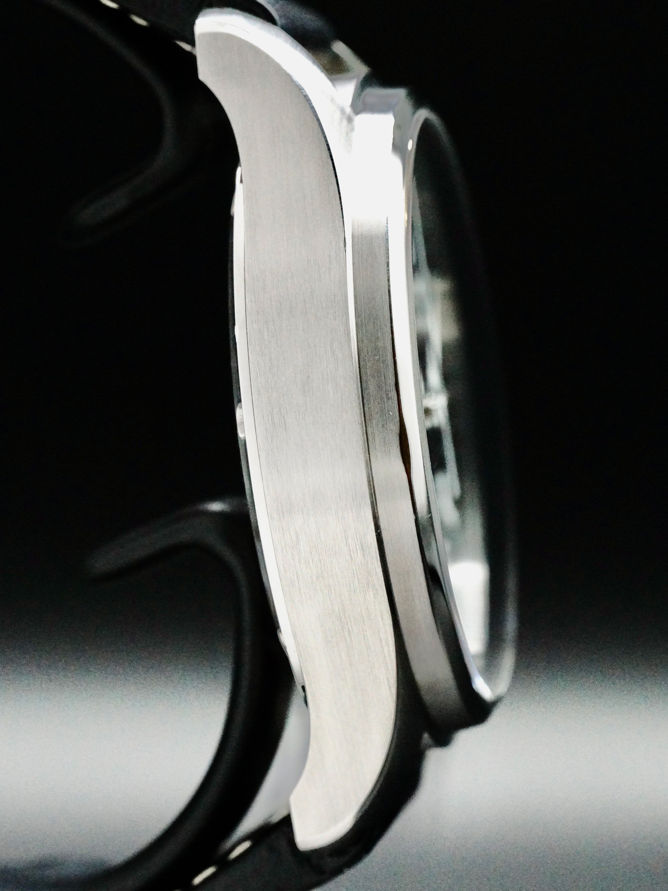 This watch features a 43 mm stainless steel case on leather strap. This watch also sports a blue dial. Powered by a mechanical automatic movement. Water resistance up to 100 meters.