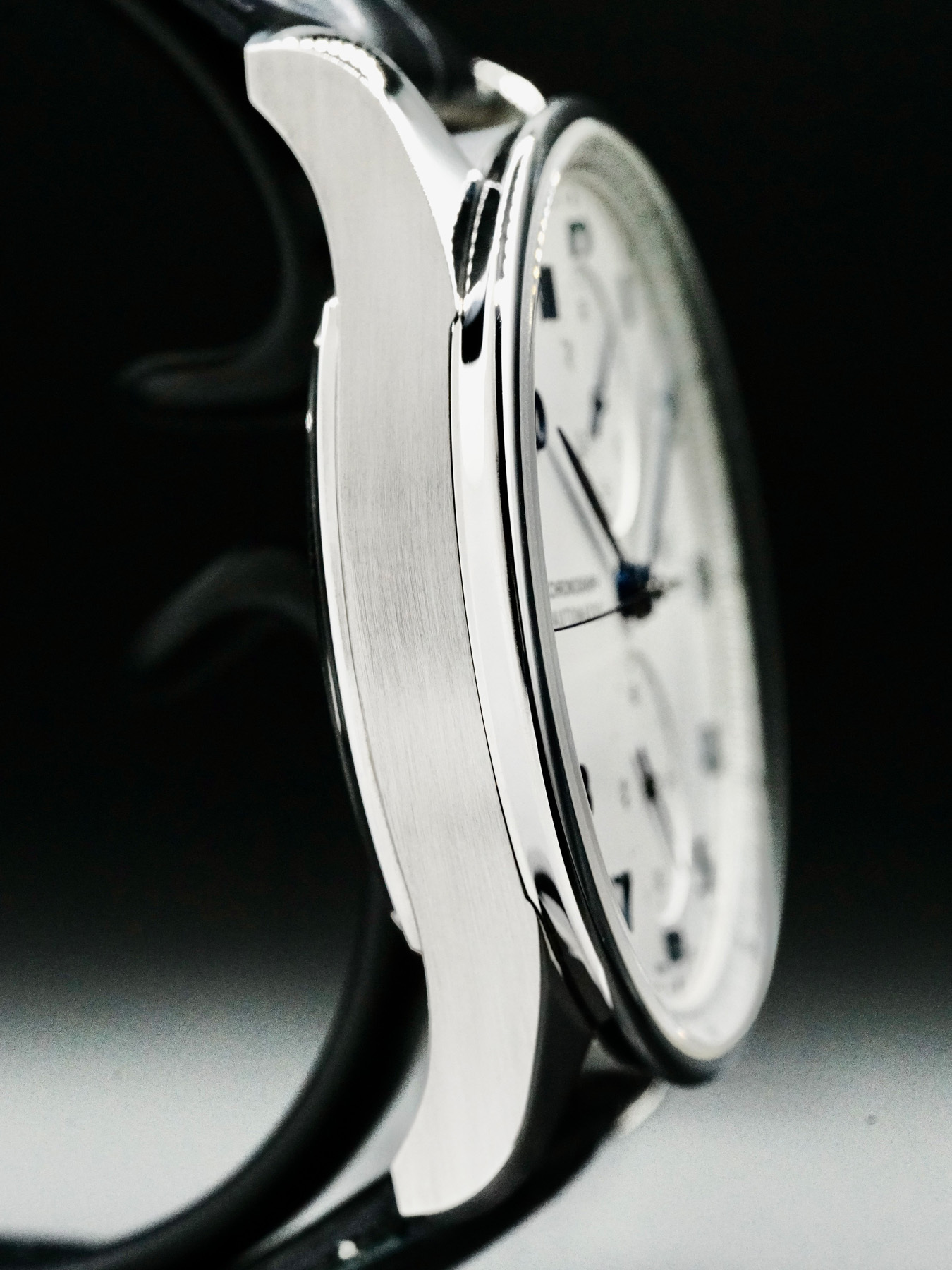 This watch features a 40mm steel case with white dial. Powered by a Mechanical Automatic Movement. Water resistance up to 30 meters.