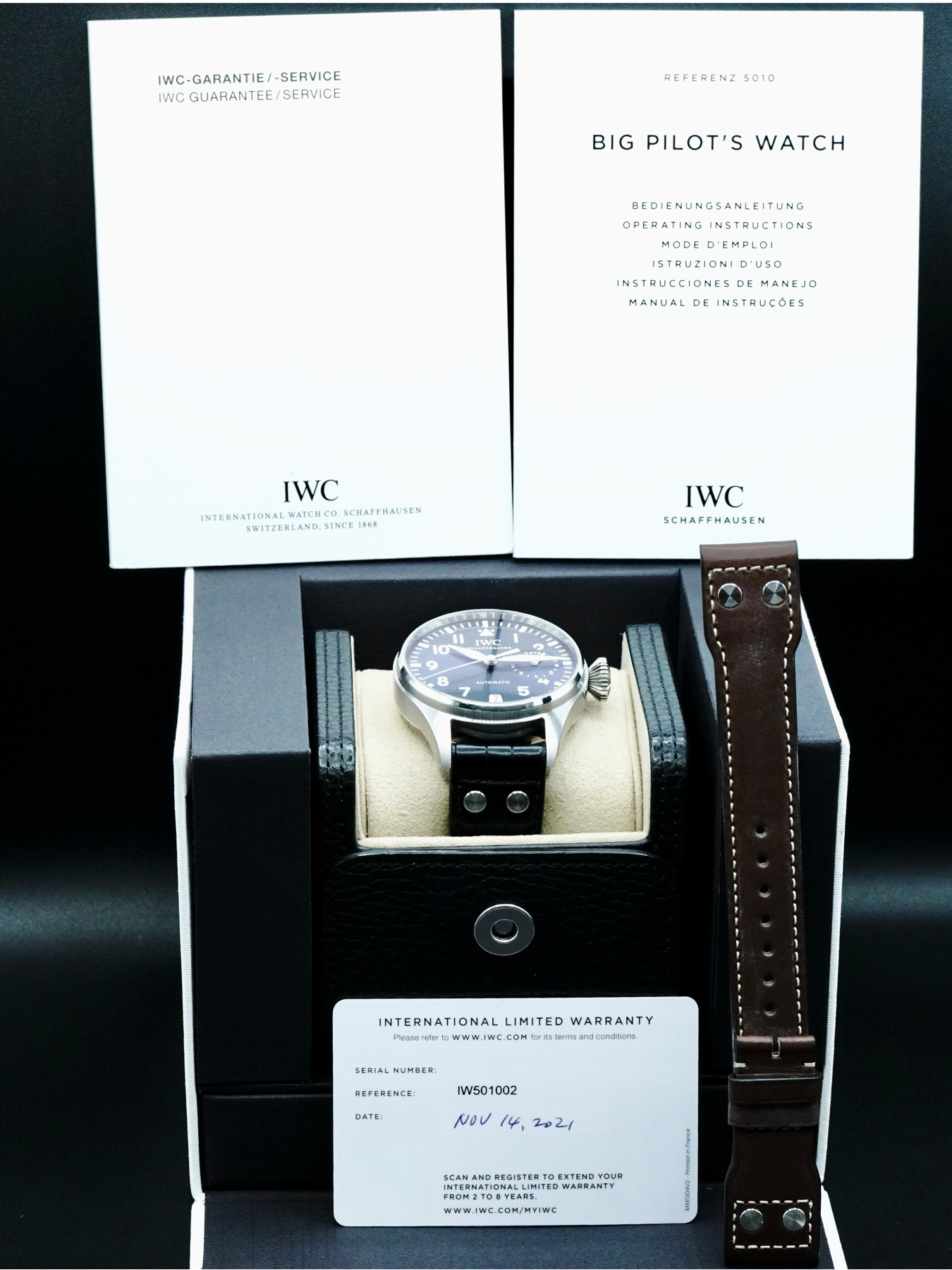 This IWC Big Pilot's Watch Edition "Le Petit Prince" IW501002 is in EXCELLENT condition. This watch includes its original box, original papers, and warranty card dated for November 2021. Extra brown leather strap. This watch has been fully authenticated and certified by Exquisite Timepieces.