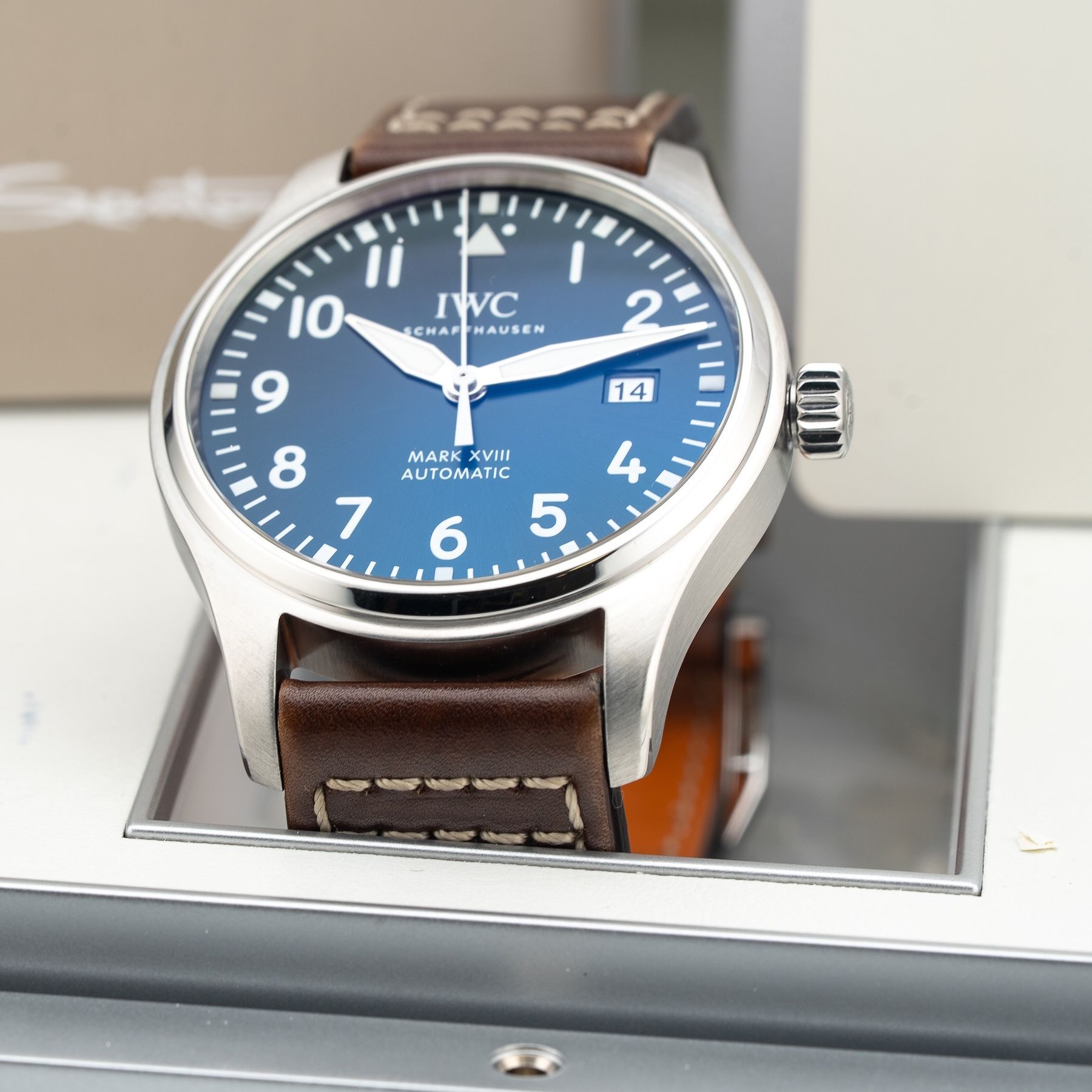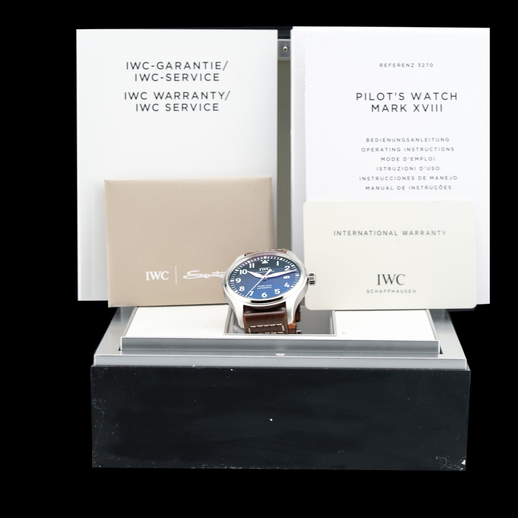 This IWC Mark XVIII Le Petite Prince IW327004 is in GREAT condition. This watch includes its Original Box, Original Papers and warranty card dated 09/24/2016. This watch has been fully authenticated and certified by Exquisite Timepieces.