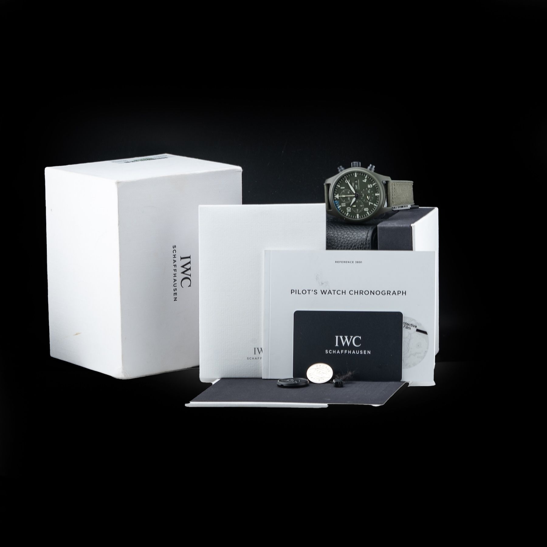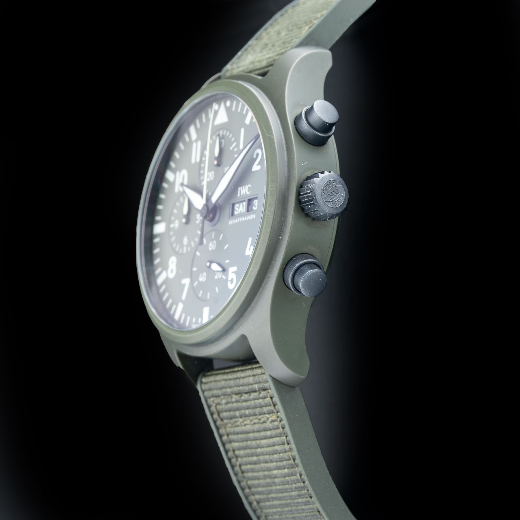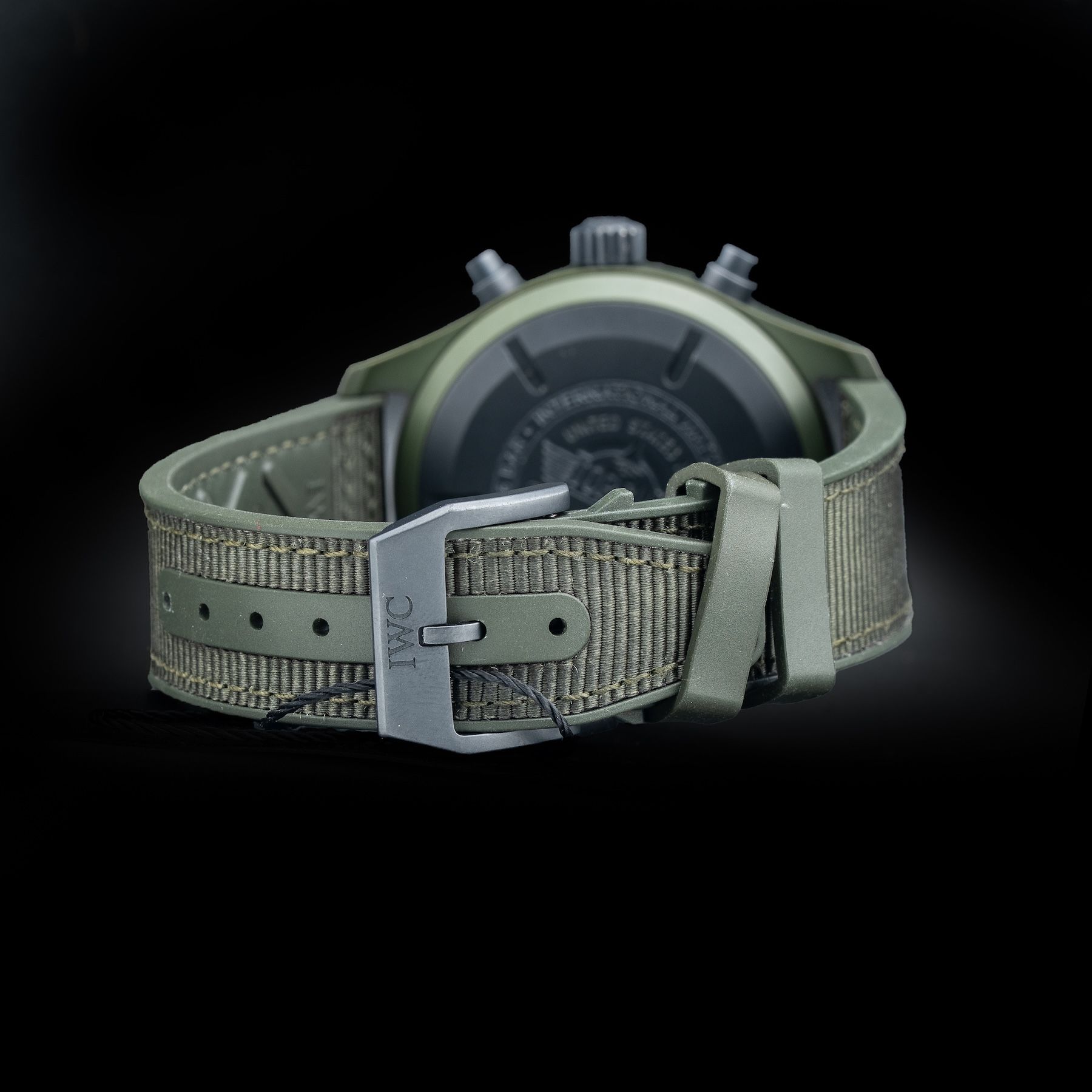 This IWC Pilot Chronograph Top Gun IW389106 is in GREAT condition. This watch includes its Original Box, Original Papers and Warranty Card Dated 11/9/2022, extra strap. This watch has been fully authenticated and certified by Exquisite Timepieces. Please note, the photos shown are of the actual watch you will receive.