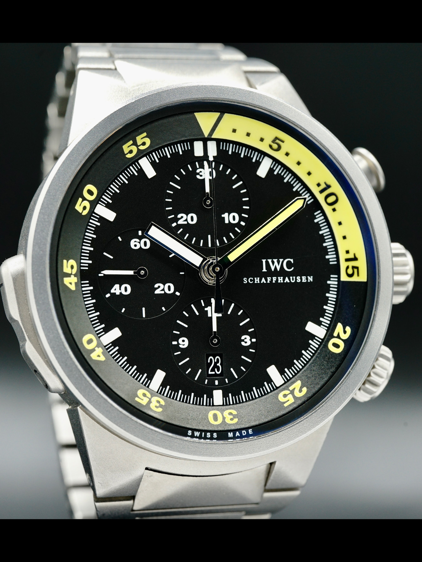 This IWC Aquatimer Split Minute Chronograph IW372301 is in EXCELLENT condition. This watch includes its original box only. No warranty card. This watch has been fully authenticated and certified by Exquisite Timepieces.