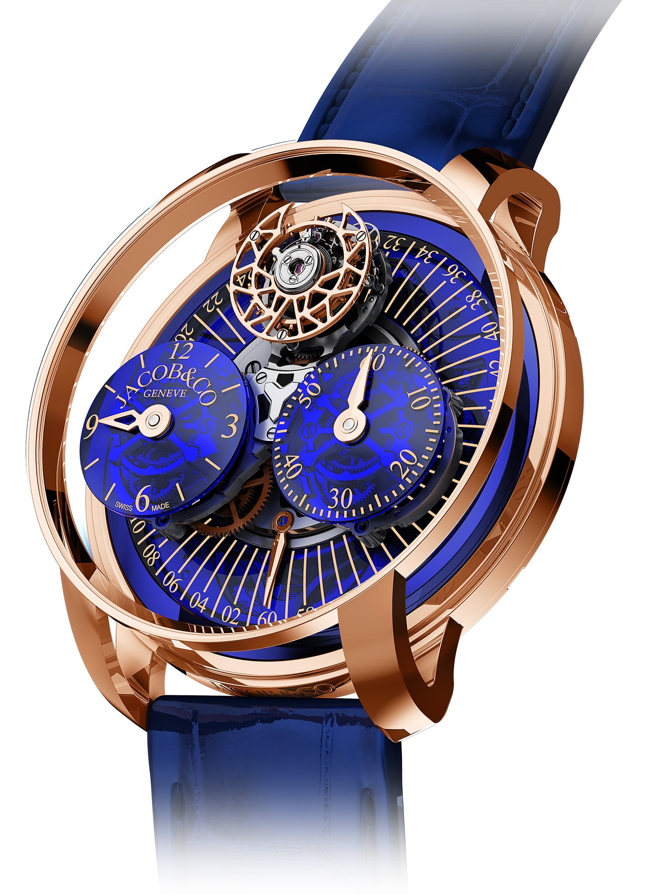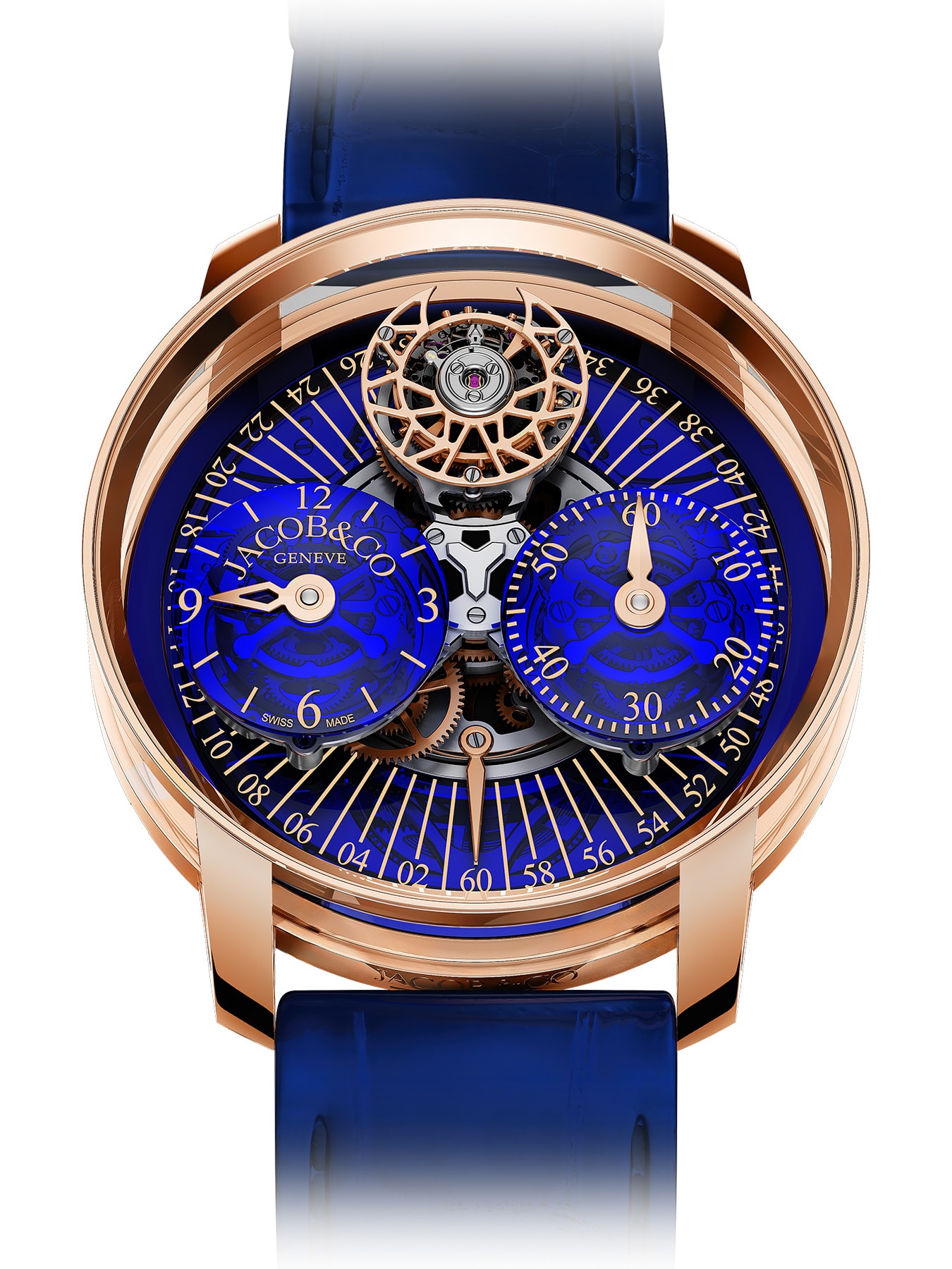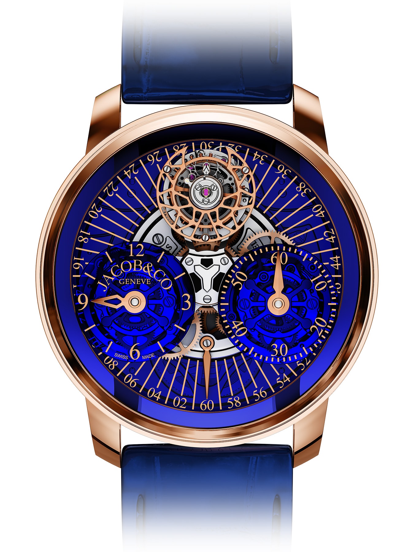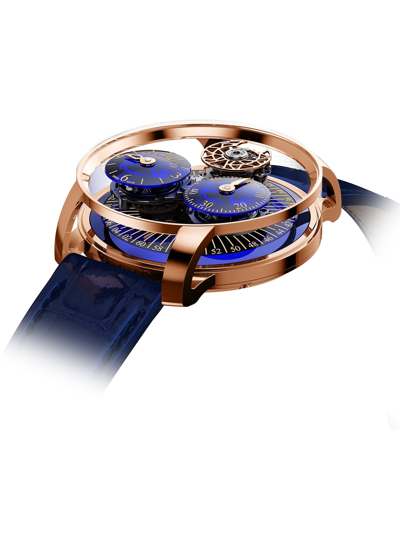 Discover the pinnacle of luxury and innovation with the Astronomia Regulator by Jacob & Co. This masterpiece showcases a unique 3D rotating movement, an 18K rose gold and sapphire case, and exclusive features like a double-axis flying tourbillon. Limited to just 6 pieces, it's the epitome of exclusivity and precision. Perfect for collectors seeking unmatched craftsmanship and design.