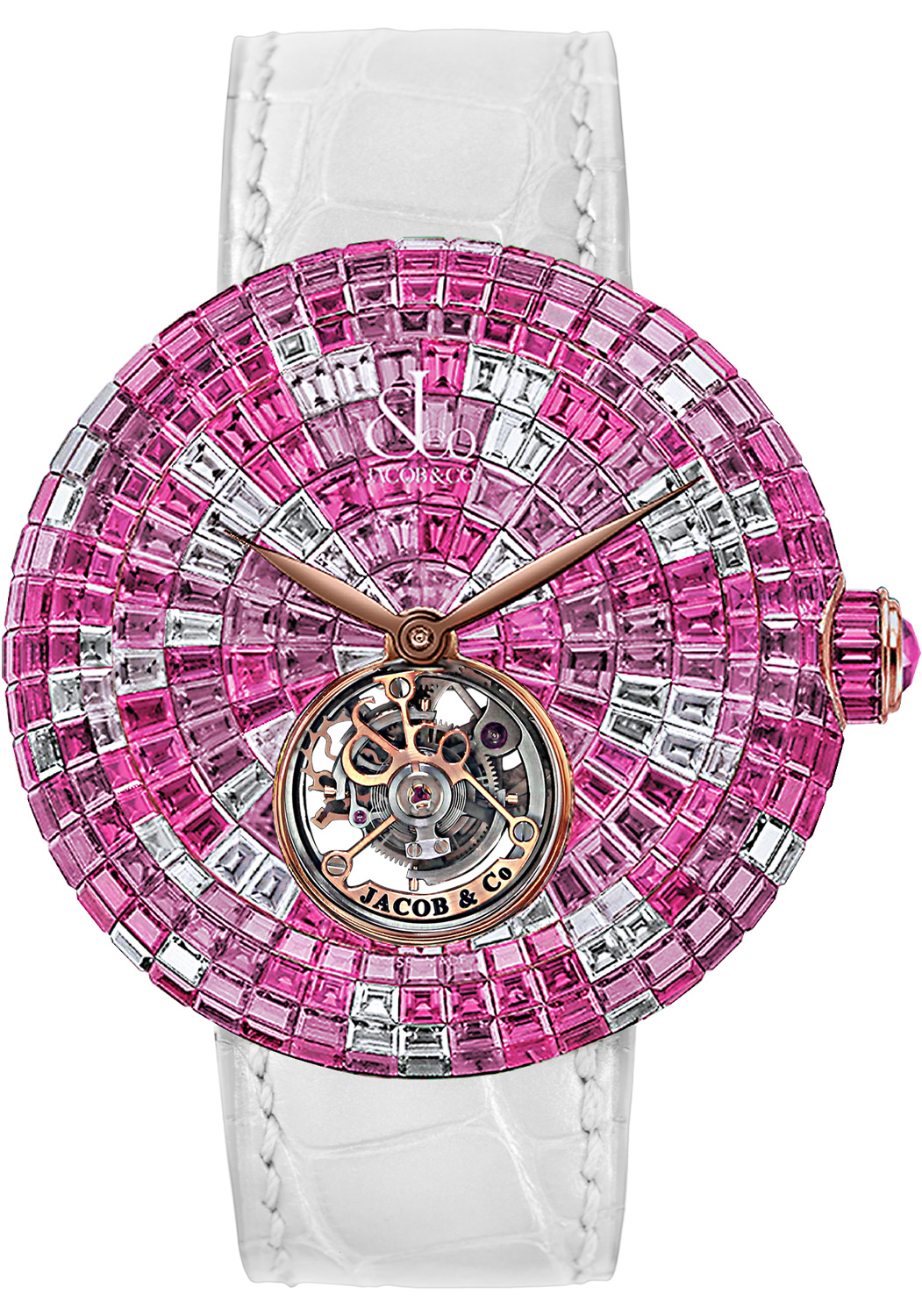 Dial: Invisibly-set with 160 Baguette-cut Pink Sapphires ( ≈12.34 ct.)