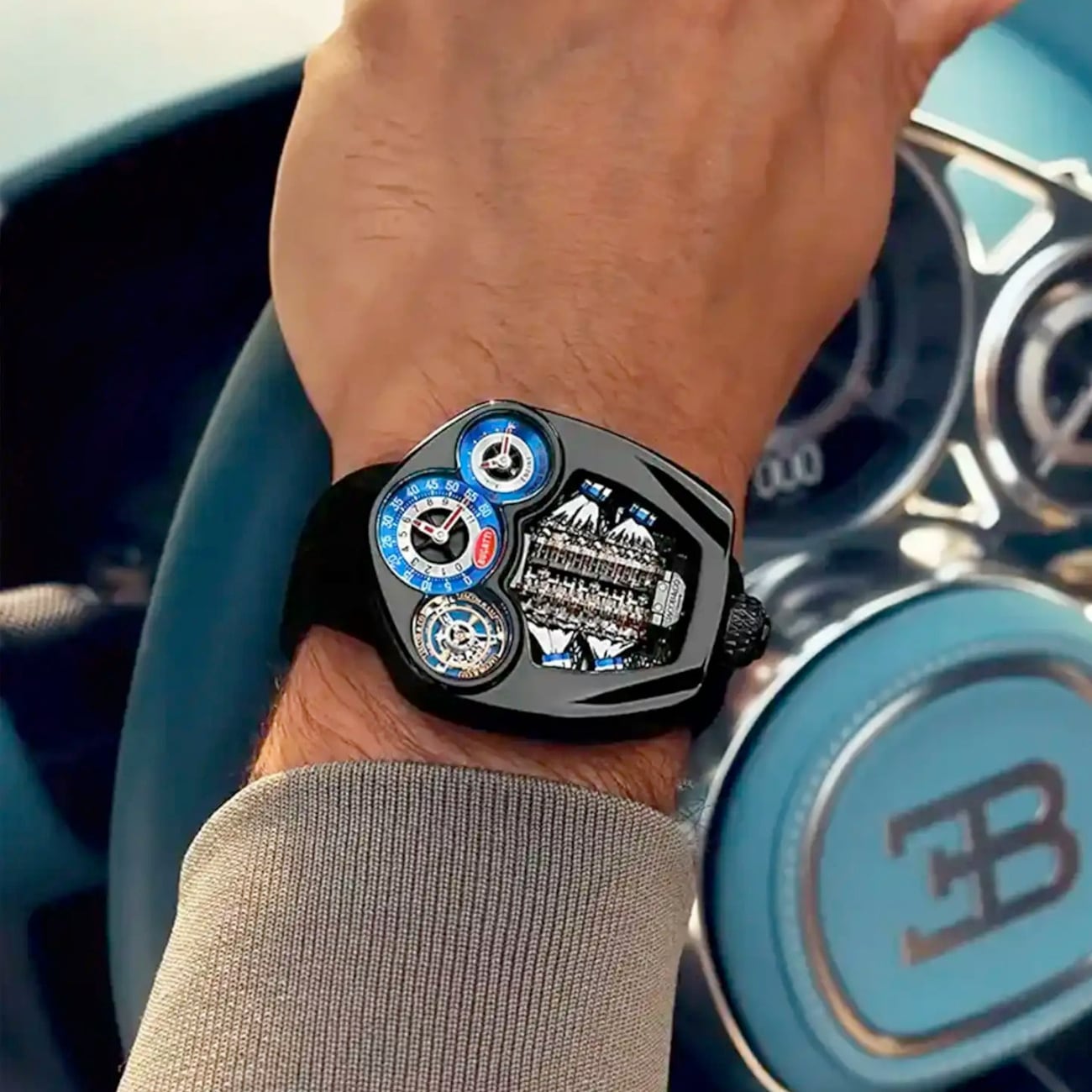 In 2019, Bugatti Automobiles and Jacob & Co. entered into a partnership agreement, based on a shared focus on extreme luxury, mechanical performance and craft. Both brands have been working together to create unrivaled hypercar-inspired timepieces.