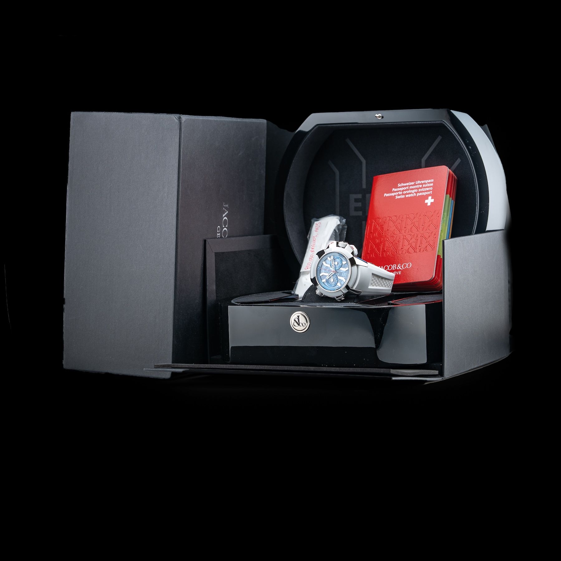 This Jacob & Co. EC313.20.AD.AA.A Epic X Chrono 47mm Titanium is in GREAT condition, it has boxes, papers and warranty card not dated. Extra strap. This watch has been fully authenticated and certified by Exquisite Timepieces. Please note, the photos shown are of the actual watch you will receive.