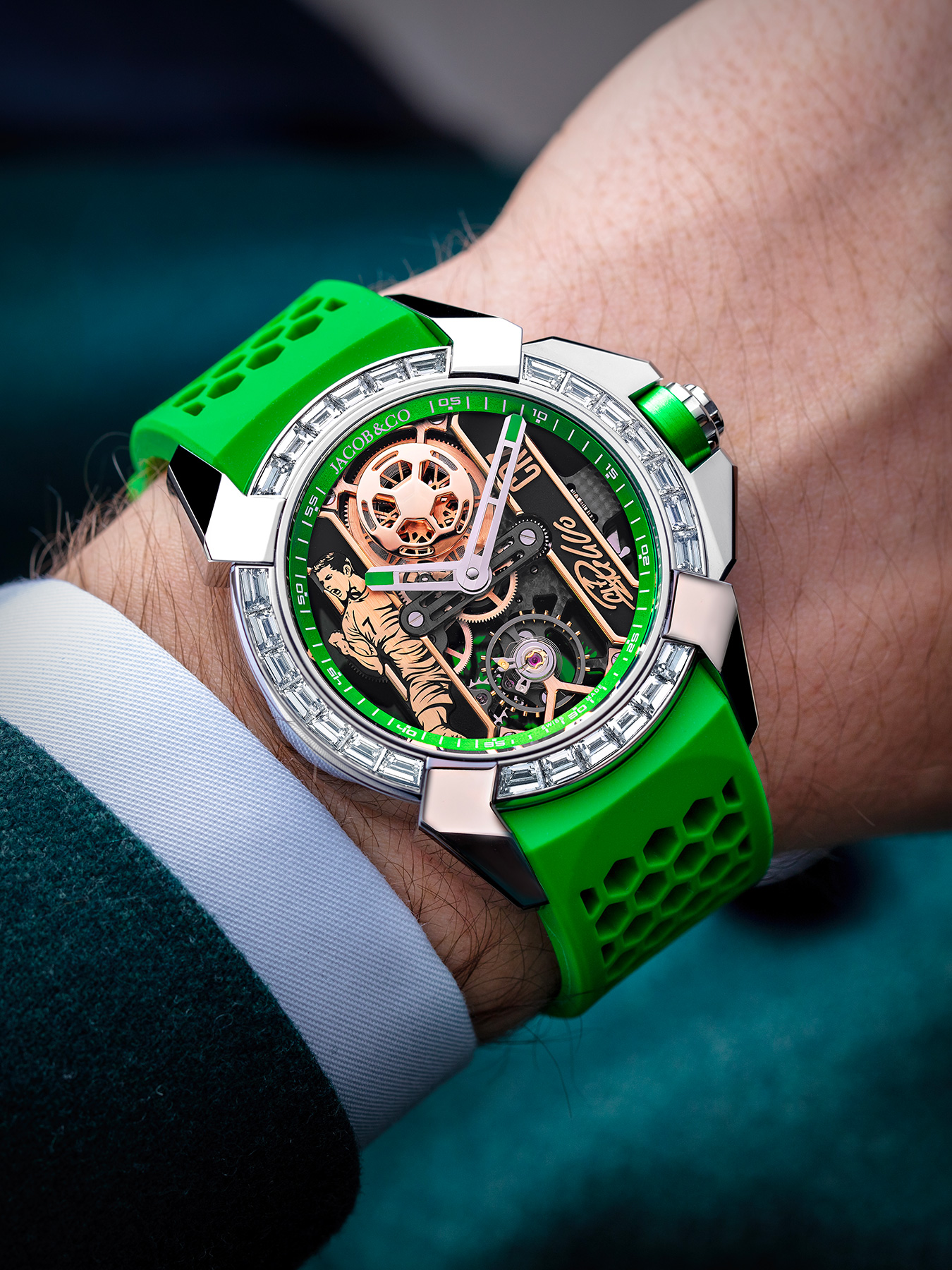 Both men immediately found common ground in their quest for excellence. They crafted their success from the ground up and achieved it through relentless determination and work. Their relationship has now grown into a business venture in which Jacob & Co. designs and manufactures timepieces after the image of Cristiano Ronaldo, which are co-branded by both powerhouses.
