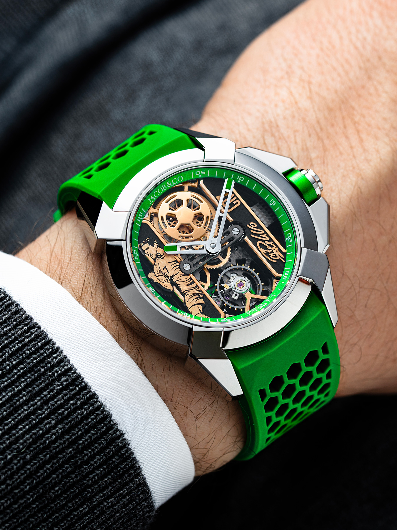 Both men immediately found common ground in their quest for excellence. They crafted their success from the ground up and achieved it through relentless determination and work. Their relationship has now grown into a business venture in which Jacob & Co. designs and manufactures timepieces after the image of Cristiano Ronaldo, which are co-branded by both powerhouses.