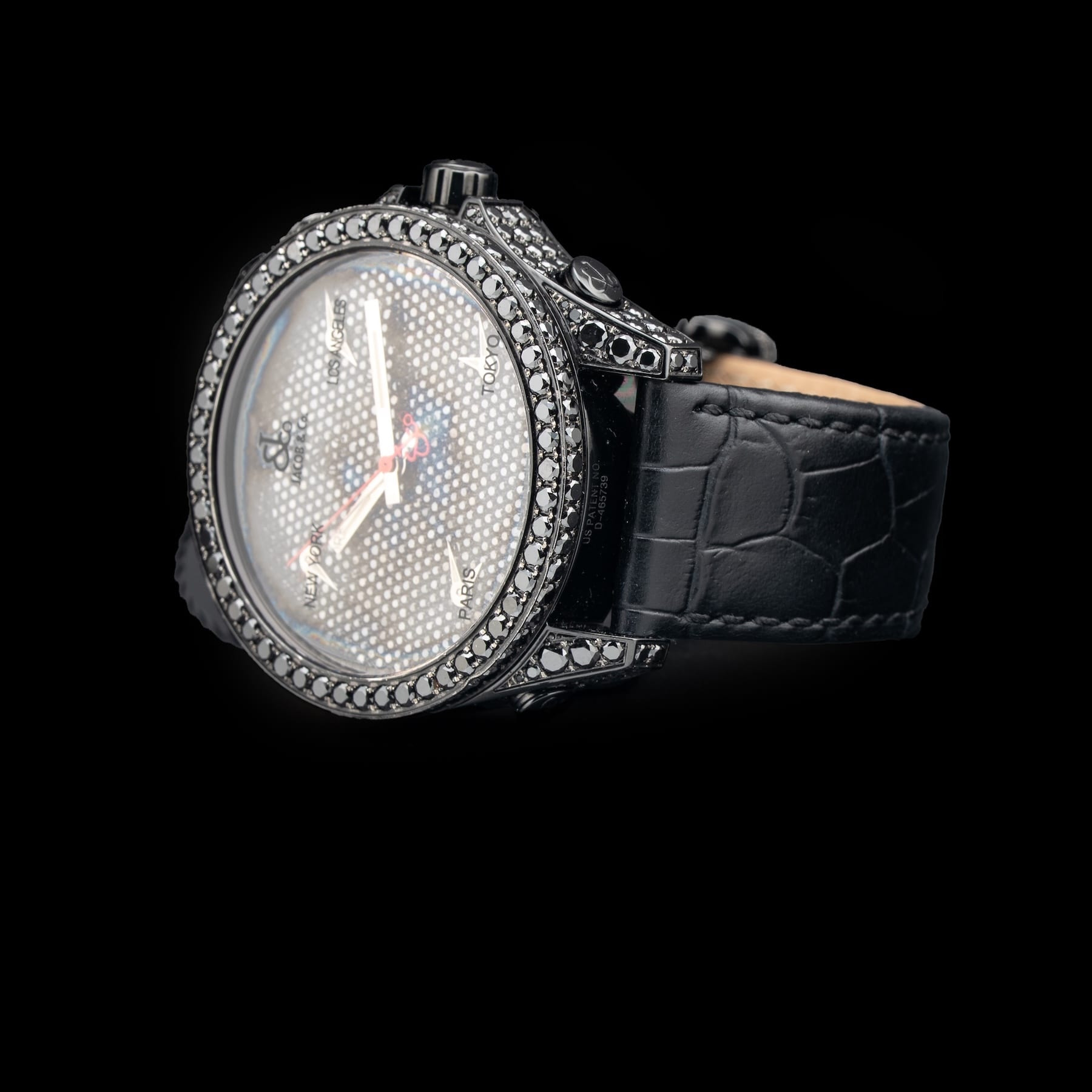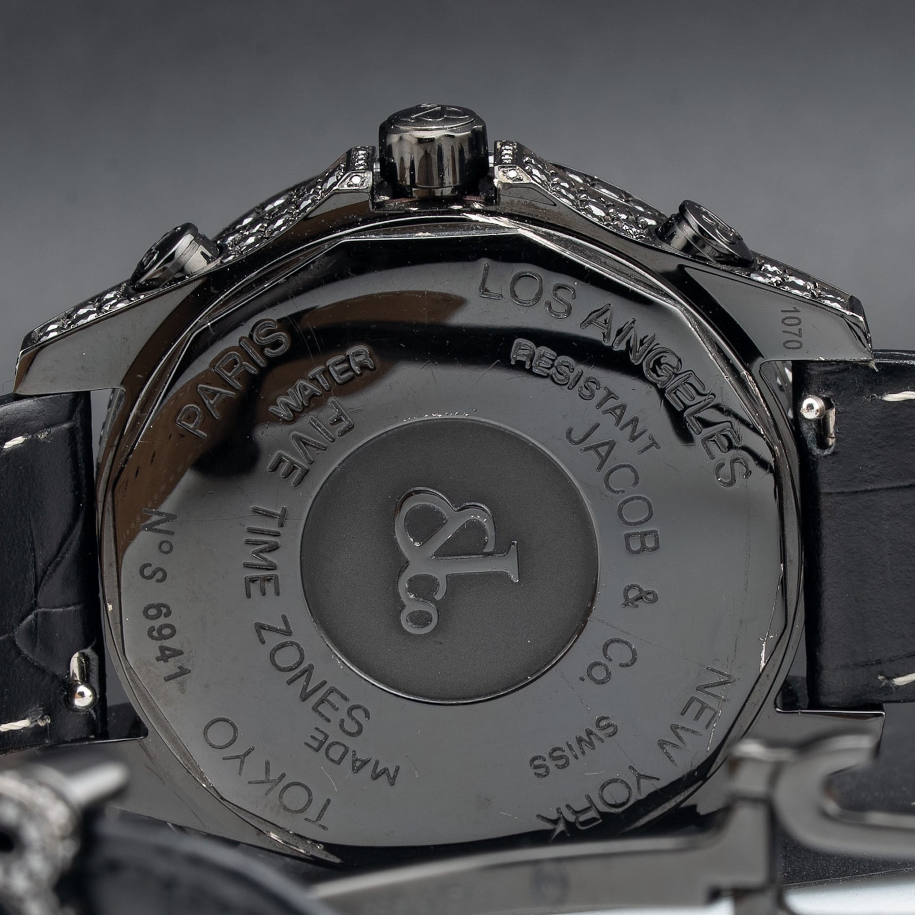 This Jacob & Co. Five Time Zone Diamond JC-130 is in GREAT condition. This watch does not include a box or papers. This watch has been fully authenticated and certified by Exquisite Timepieces. Please note, the photos shown are of the actual watch you will receive.