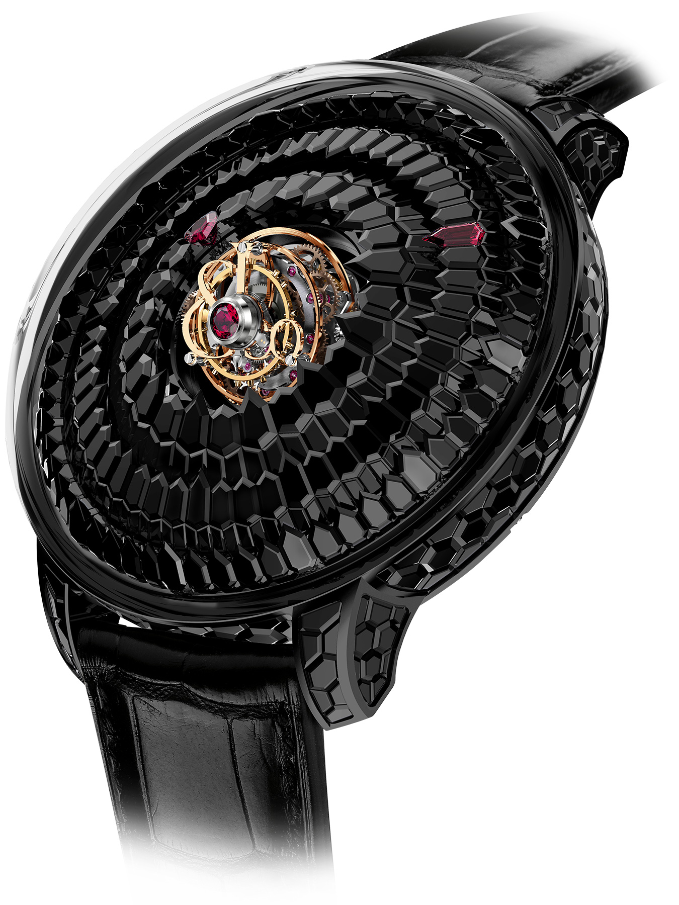 The Mystery Tourbillon is powered by caliber JCAM32. It's made up of 430 individual components, most of which are contained in its ground-breaking, one of a kind tourbillon.