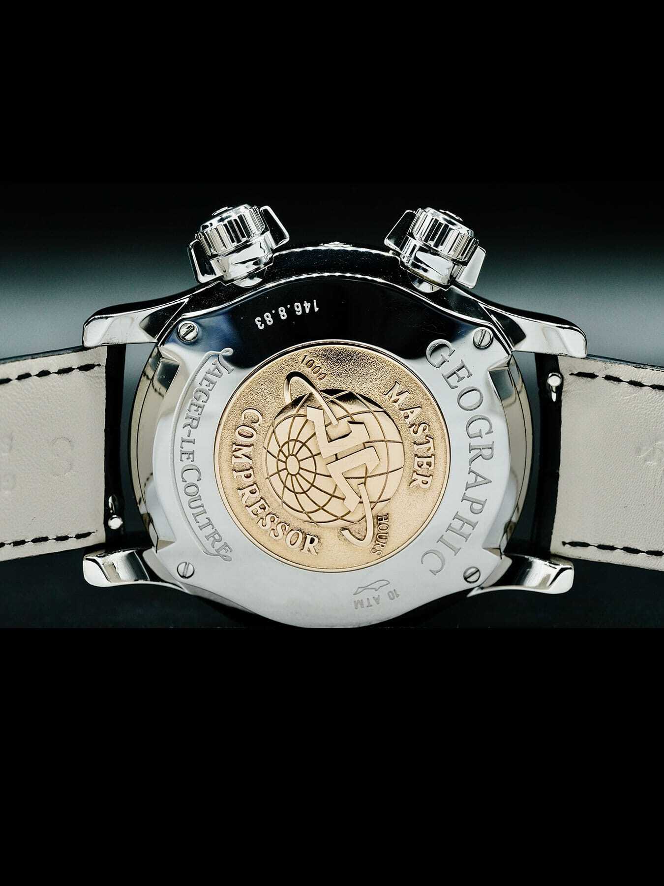 This Jaeger LeCoultre Geographic 146.8.83 is in EXCELLENT condition. It has boxes and papers. Guarantee certificate dated for
