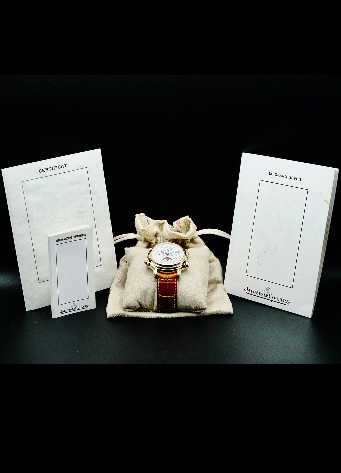 This Jaeger LeCoultre Grand Reveil 180.140.990 is in GREAT condition. This watch includes its travel pouch, instruction manual, and certificate of authenticity. Full serviced by Jaeger LeCoulte and under factory for two years.